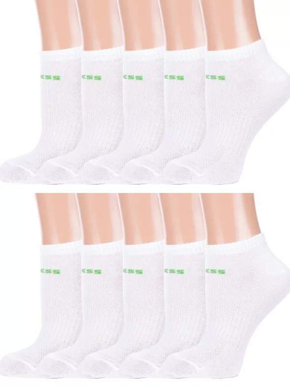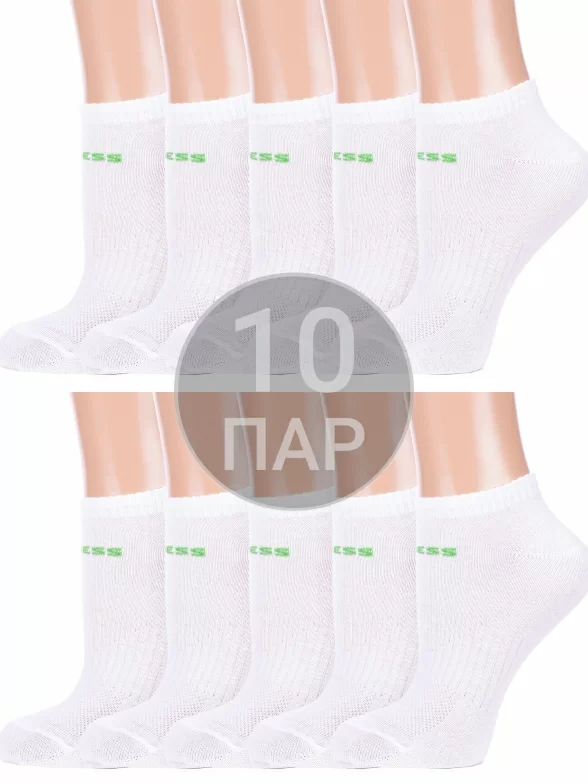 Комплект из 10 пар женских спортивных носков Альтаир, 10-А217, БЕЛЫЕ с зеленым
