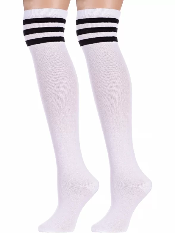 Комплект детских гольфов из 2 пар, круглогодичные, цвет белый, повседневные, возможно бесшовные, принт (рисунок): полоски, с узором, состав: 80% хлопок, 18% полиамид, 2% эластан, арт. 2-М98. Производитель «ООО Альтаир, г. Орск, Оренбургская обл, Россия» под брендом «Альтаир».