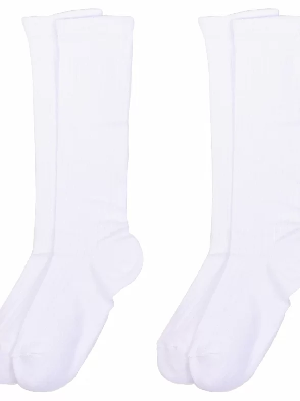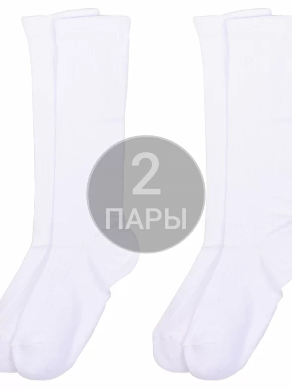Комплект детских гольфов из 2 пар, круглогодичные, цвет белый, классические, возможно бесшовные, принт (рисунок): в рубчик, однотонный, без рисунков/узоров, состав: 80% хлопок, 18% полиамид, 2% эластан, арт. 2-А15. Производитель «ООО Альтаир, г. Орск, Оренбургская обл, Россия» под брендом «Альтаир».