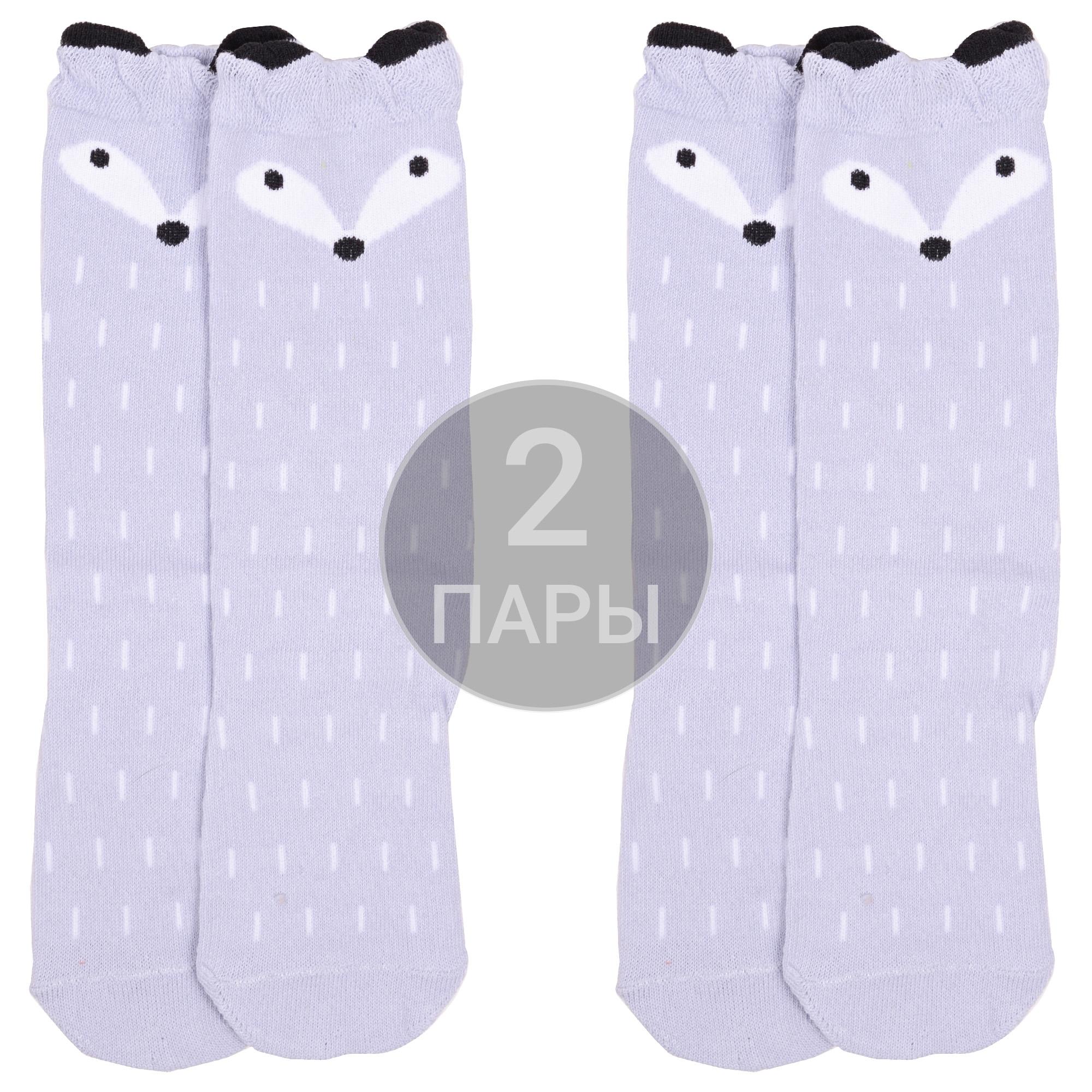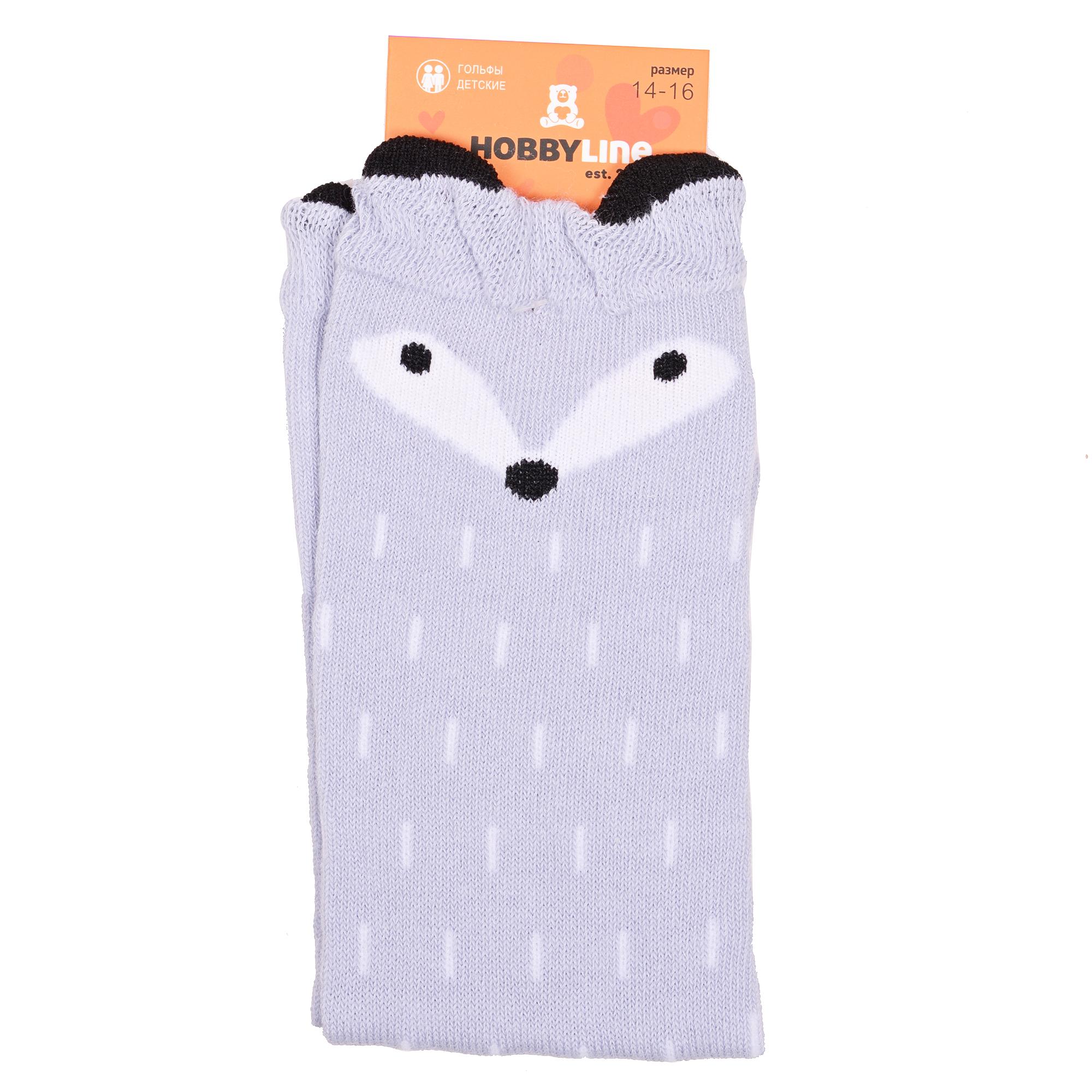 Комплект детских гольфов из 2 пар, круглогодичные, цвет серый, повседневные, шов обычный (не бесшовные), принт (рисунок): животные, с узором, состав: 90% хлопок, 8% полиамид, 2% эластан, арт. 2-гд4445. Производитель «Китай, страна бренда - Россия» под брендом «Hobby line».