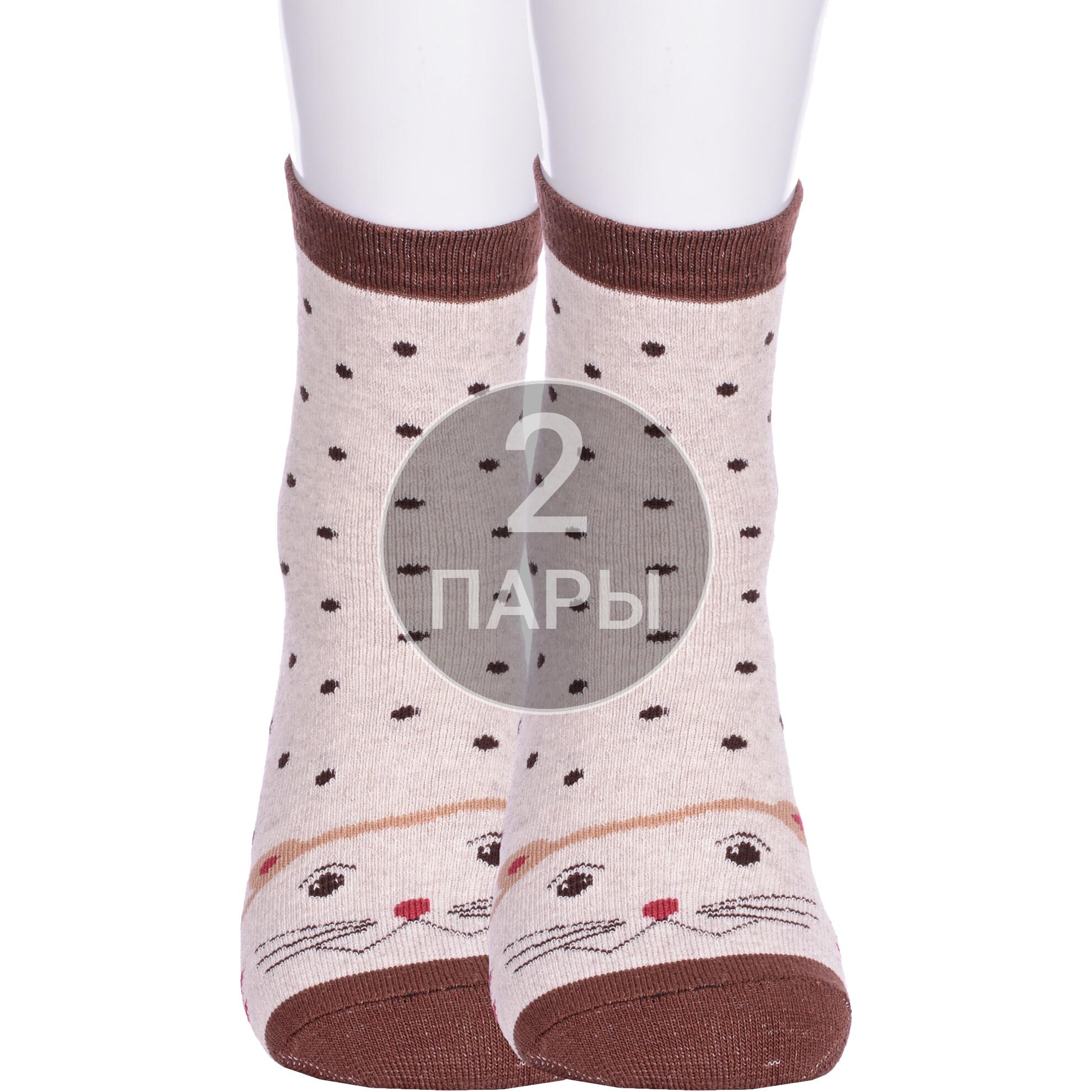 Комплект детских носков из 2 пар, межсезонные или зимние, укороченные, цвет бежево-коричневый, теплые, махровые, с принтом, состав: 80% хлопок, 18% полиамид, 2% эластан, арт. 2-С112. Производитель «ООО Альтаир, г. Орск, Оренбургская обл, Россия» под брендом «Альтаир».