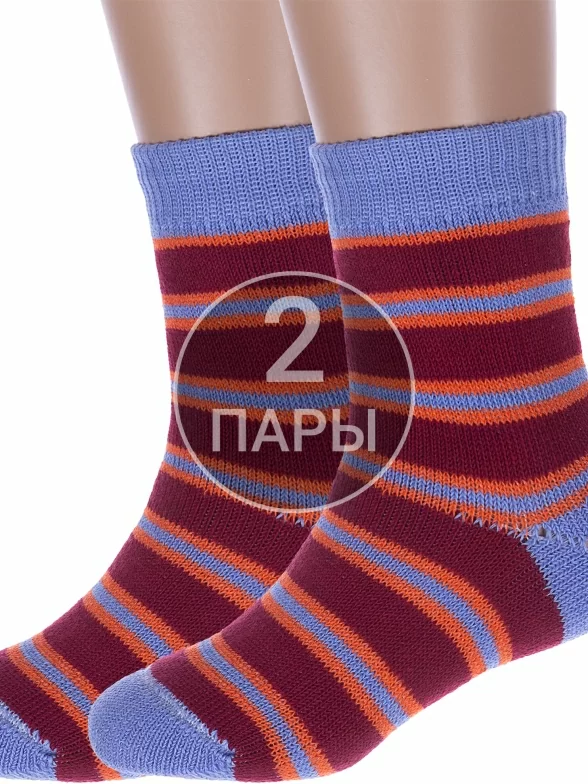Комплект детских носков из 2 пар, межсезонные или зимние, укороченные, цвет бордово-голубой, теплые, повседневные, махровые, возможно бесшовные, принт (рисунок): полоски, с узором, состав: 98% хлопок, 1.5% эластан, 0.5% полиамид, арт. 2-С114. Производитель «ООО Альтаир, г. Орск, Оренбургская обл, Россия» под брендом «Альтаир».