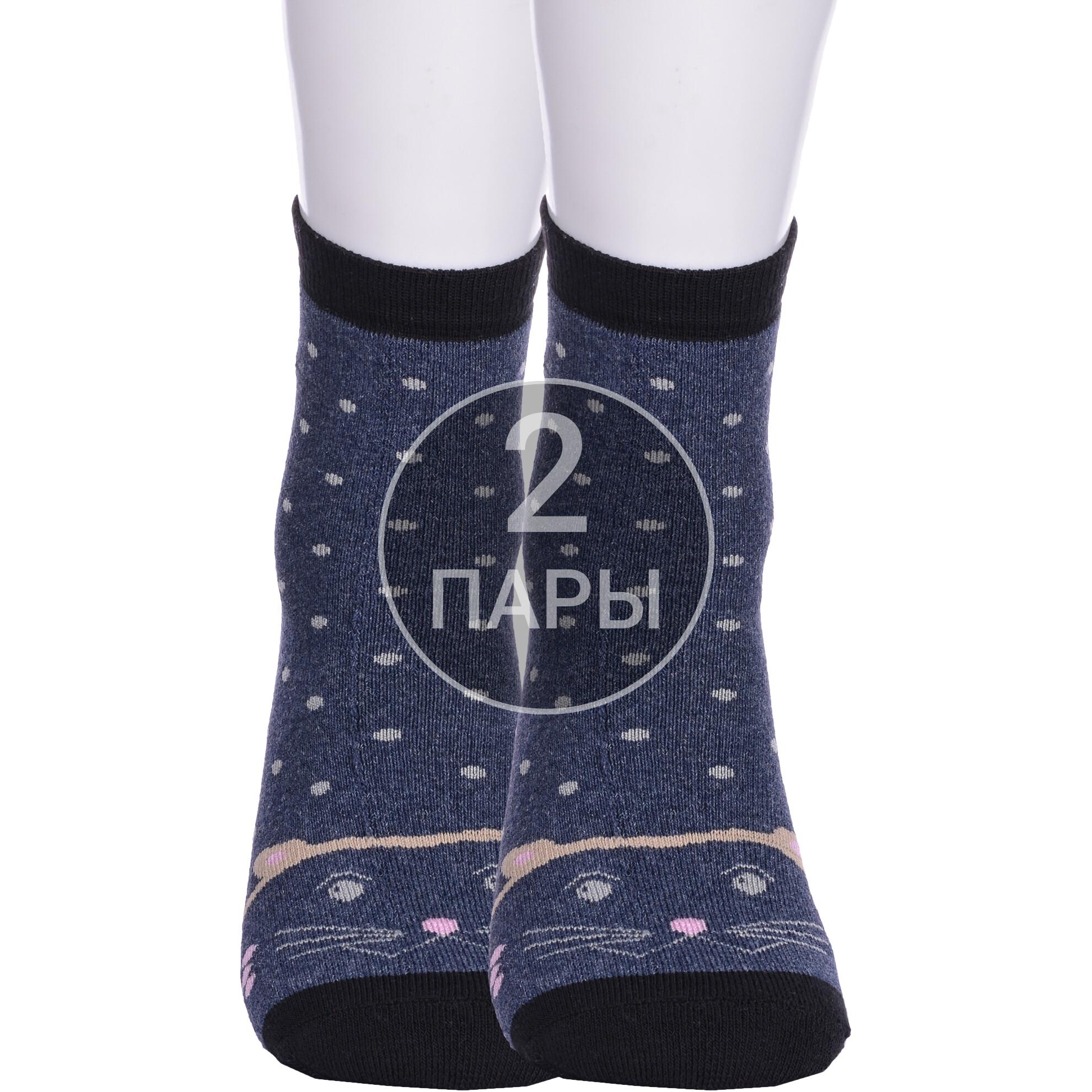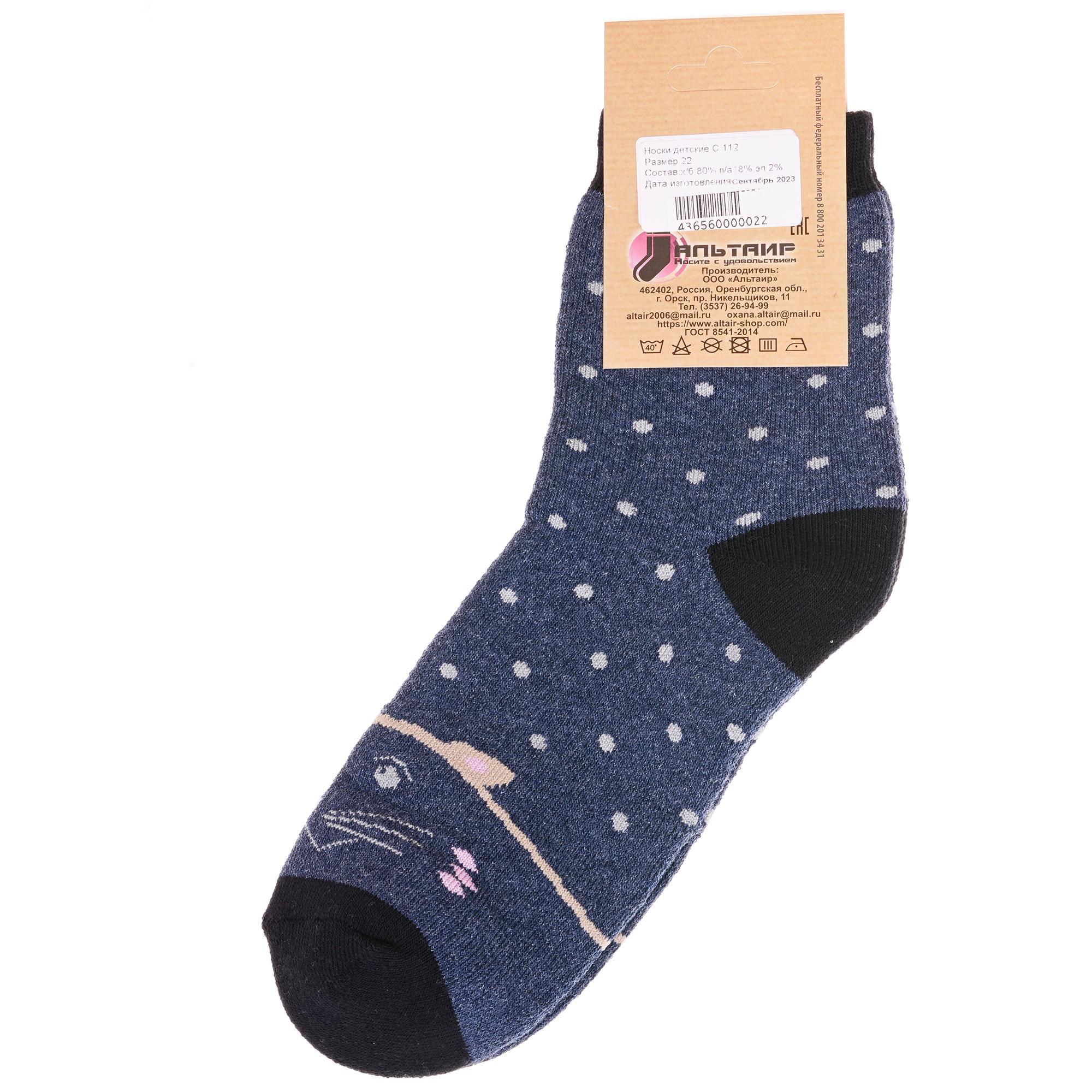 Комплект детских носков из 2 пар, межсезонные или зимние, укороченные, цвет джинсовый, теплые, махровые, с принтом, состав: 80% хлопок, 18% полиамид, 2% эластан, арт. 2-С112. Производитель «ООО Альтаир, г. Орск, Оренбургская обл, Россия» под брендом «Альтаир».