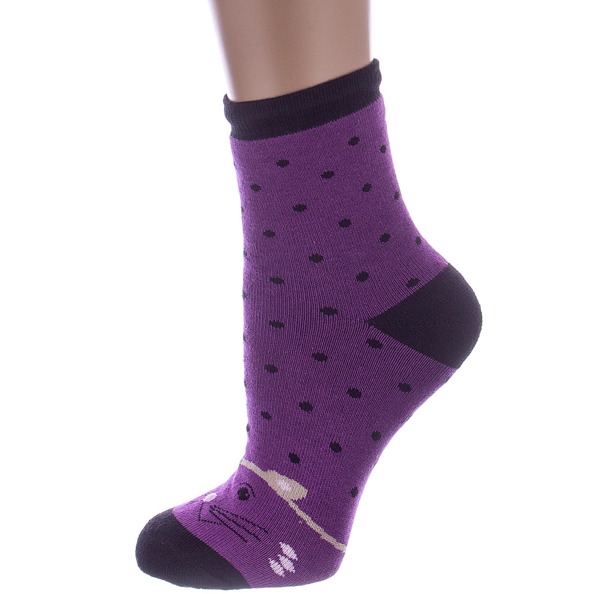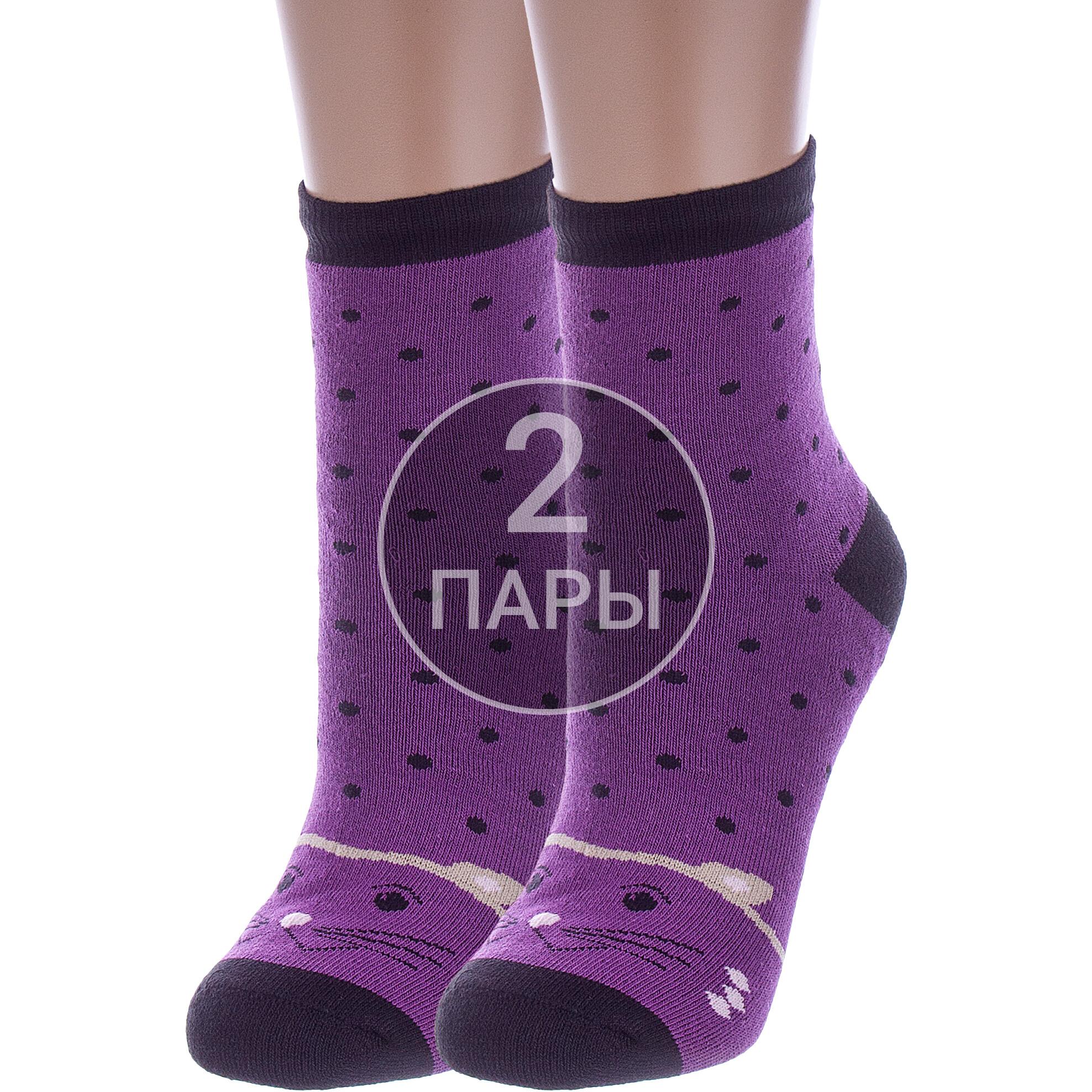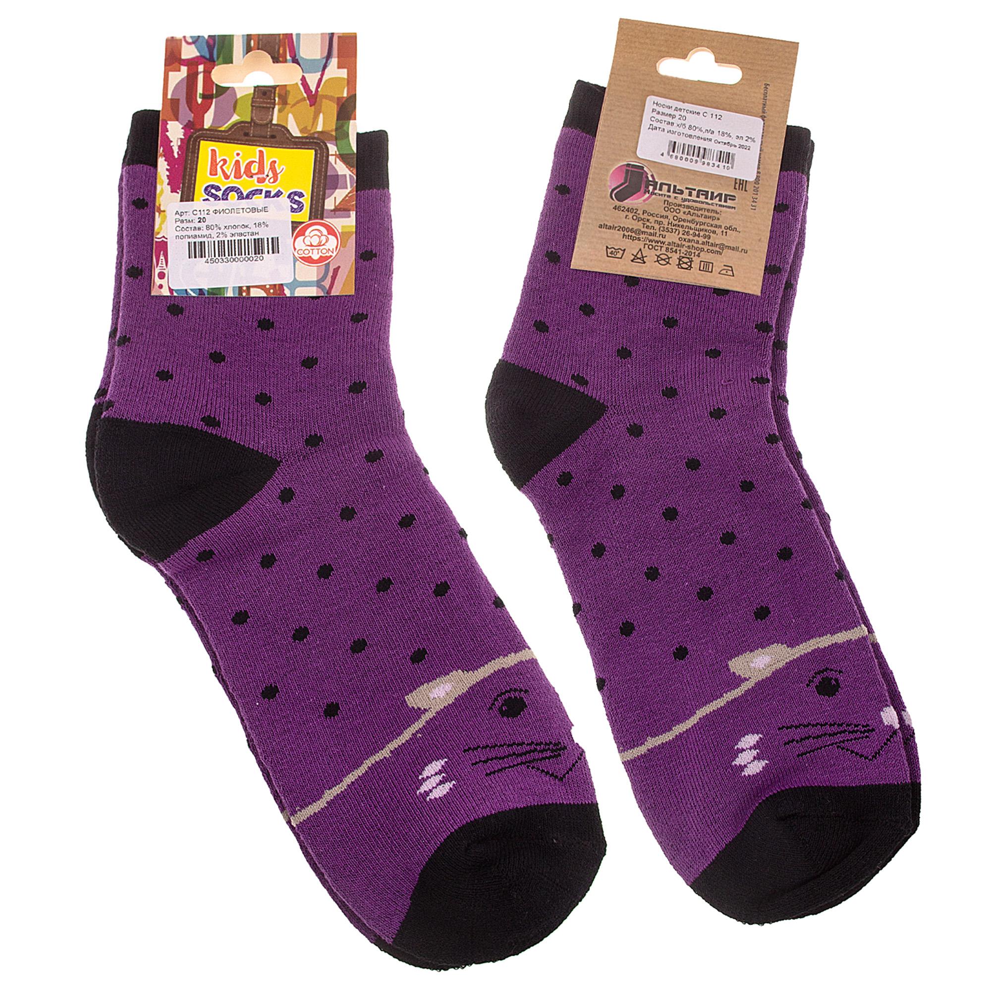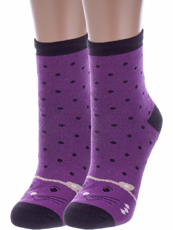 Комплект детских носков из 2 пар, межсезонные или зимние, укороченные, цвет фиолетовый, теплые, с принтом, махровые, состав: 80% хлопок, 18% полиамид, 2% эластан, арт. 2-С112. Производитель «ООО Альтаир, г. Орск, Оренбургская обл, Россия» под брендом «Альтаир».