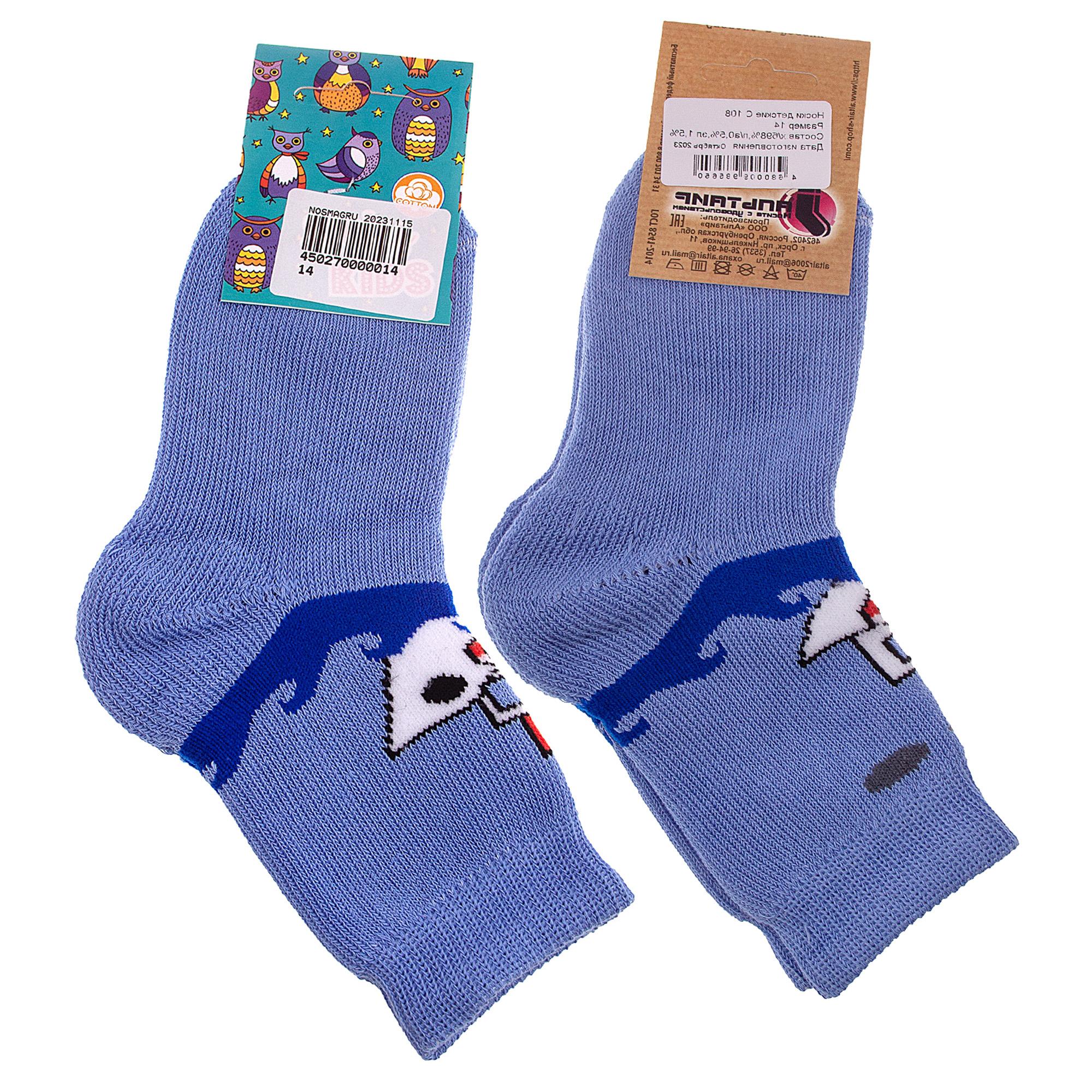 Комплект детских носков из 2 пар, межсезонные или зимние, укороченные, цвет голубой, теплые, с принтом, махровые, состав: 98% хлопок, 1.5% эластан, 0.5% полиамид, арт. 2-С108. Производитель «ООО Альтаир, г. Орск, Оренбургская обл, Россия» под брендом «Альтаир».