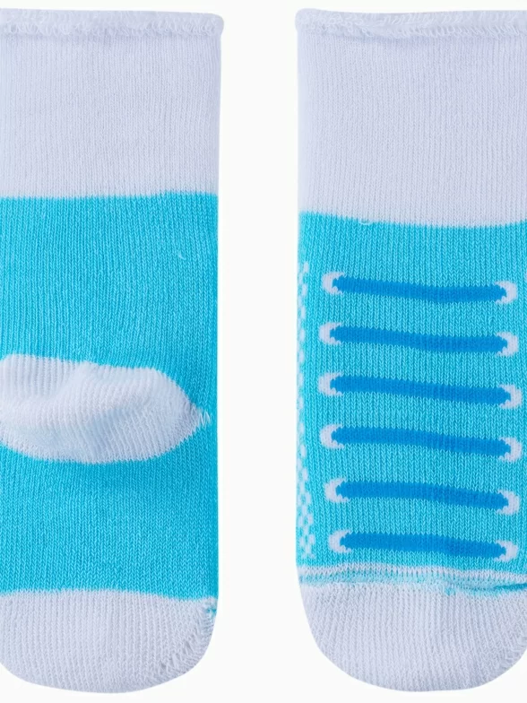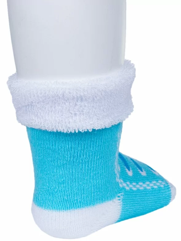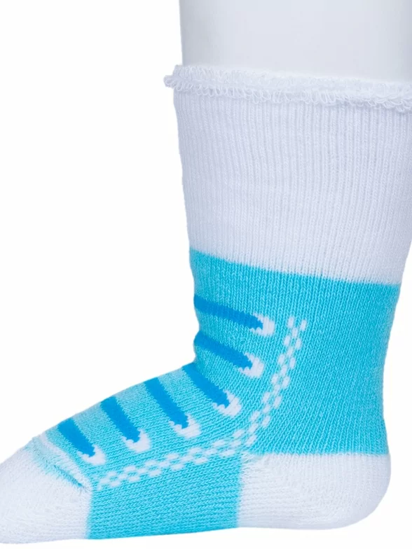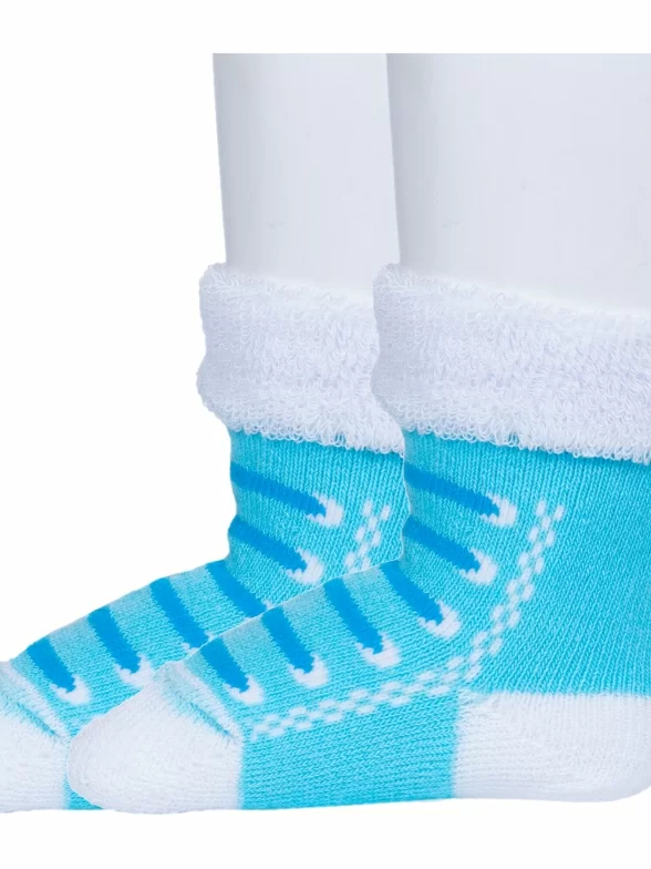 Комплект детских носков из 2 пар, межсезонные или зимние, укороченные, цвет голубой, теплые, повседневные, махровые, шов обычный (не бесшовные), принт (рисунок): шнуровка (или имитация), с узором, состав: 98% хлопок, 0.5% полиамид, 1.5% эластан, арт. 2-С48. Производитель «ООО Альтаир, г. Орск, Оренбургская обл, Россия» под брендом «Альтаир».