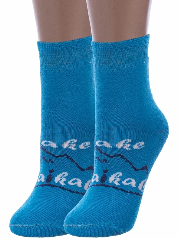 Комплект детских носков из 2 пар, межсезонные или зимние, укороченные, цвет голубой, теплые, с принтом, махровые, состав: 80% хлопок, 18% полиамид, 2% эластан, арт. 2-С67. Производитель «ООО Альтаир, г. Орск, Оренбургская обл, Россия» под брендом «Альтаир».