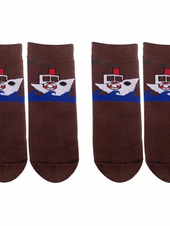 Комплект детских носков из 2 пар, межсезонные или зимние, укороченные, цвет коричневый, теплые, с принтом, махровые, состав: 98% хлопок, 1.5% эластан, 0.5% полиамид, арт. 2-С108. Производитель «ООО Альтаир, г. Орск, Оренбургская обл, Россия» под брендом «Альтаир».