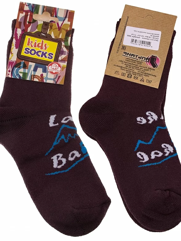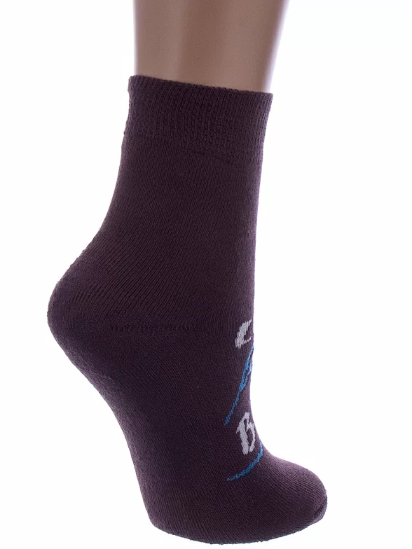 Комплект детских носков из 2 пар, межсезонные или зимние, укороченные, цвет коричневый, теплые, с принтом, махровые, состав: 80% хлопок, 18% полиамид, 2% эластан, арт. 2-С67. Производитель «ООО Альтаир, г. Орск, Оренбургская обл, Россия» под брендом «Альтаир».