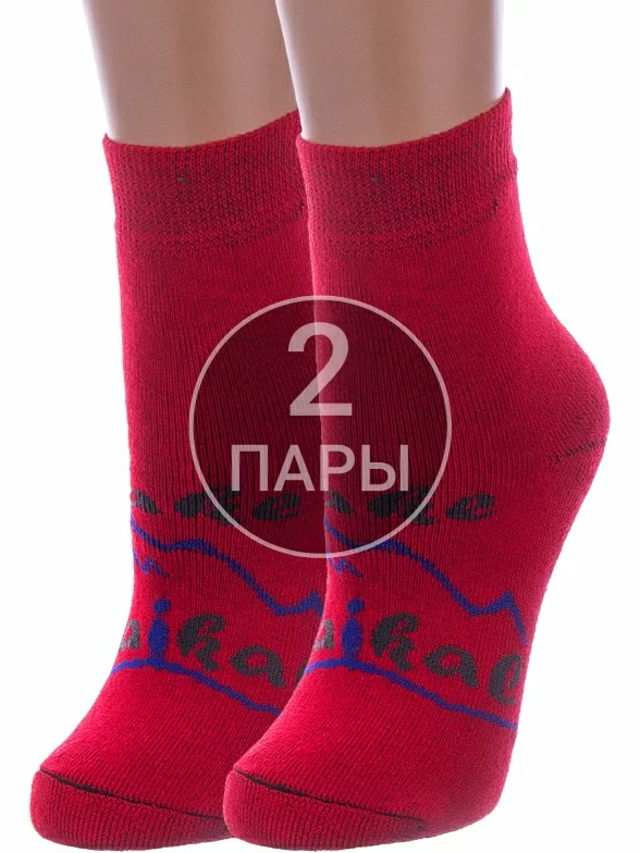 Комплект детских носков из 2 пар, межсезонные или зимние, укороченные, цвет красный, теплые, с принтом, махровые, состав: 80% хлопок, 18% полиамид, 2% эластан, арт. 2-С67. Производитель «ООО Альтаир, г. Орск, Оренбургская обл, Россия» под брендом «Альтаир».