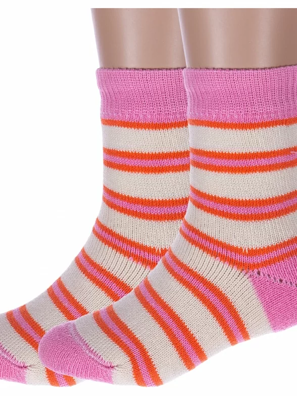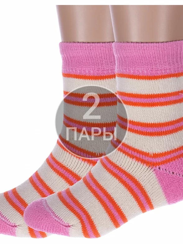 Комплект детских носков из 2 пар, межсезонные или зимние, укороченные, цвет кремово-розовый, теплые, повседневные, махровые, возможно бесшовные, принт (рисунок): полоски, с узором, состав: 98% хлопок, 1.5% эластан, 0.5% полиамид, арт. 2-С114. Производитель «ООО Альтаир, г. Орск, Оренбургская обл, Россия» под брендом «Альтаир».