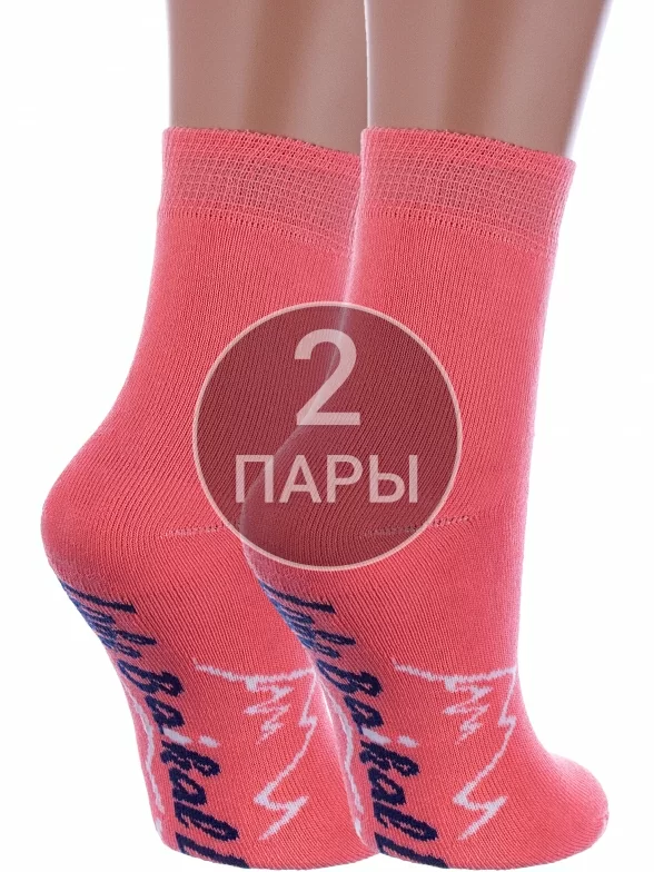 Комплект детских носков из 2 пар, межсезонные или зимние, укороченные, цвет персиковый, теплые, с принтом, махровые, состав: 80% хлопок, 18% полиамид, 2% эластан, арт. 2-С67. Производитель «ООО Альтаир, г. Орск, Оренбургская обл, Россия» под брендом «Альтаир».