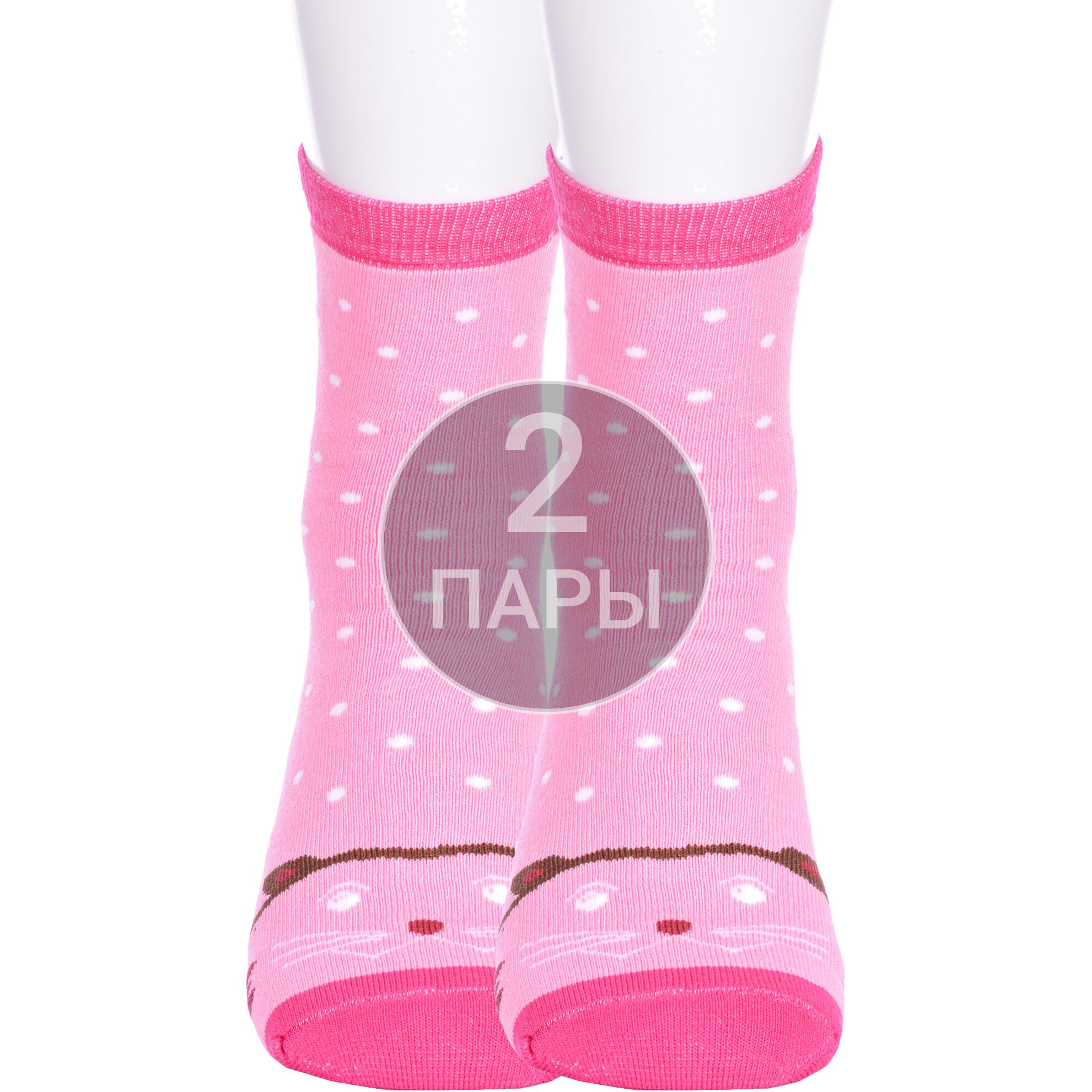 Комплект детских носков из 2 пар, межсезонные или зимние, укороченные, цвет розовый, теплые, махровые, с принтом, состав: 80% хлопок, 18% полиамид, 2% эластан, арт. 2-С112. Производитель «ООО Альтаир, г. Орск, Оренбургская обл, Россия» под брендом «Альтаир».