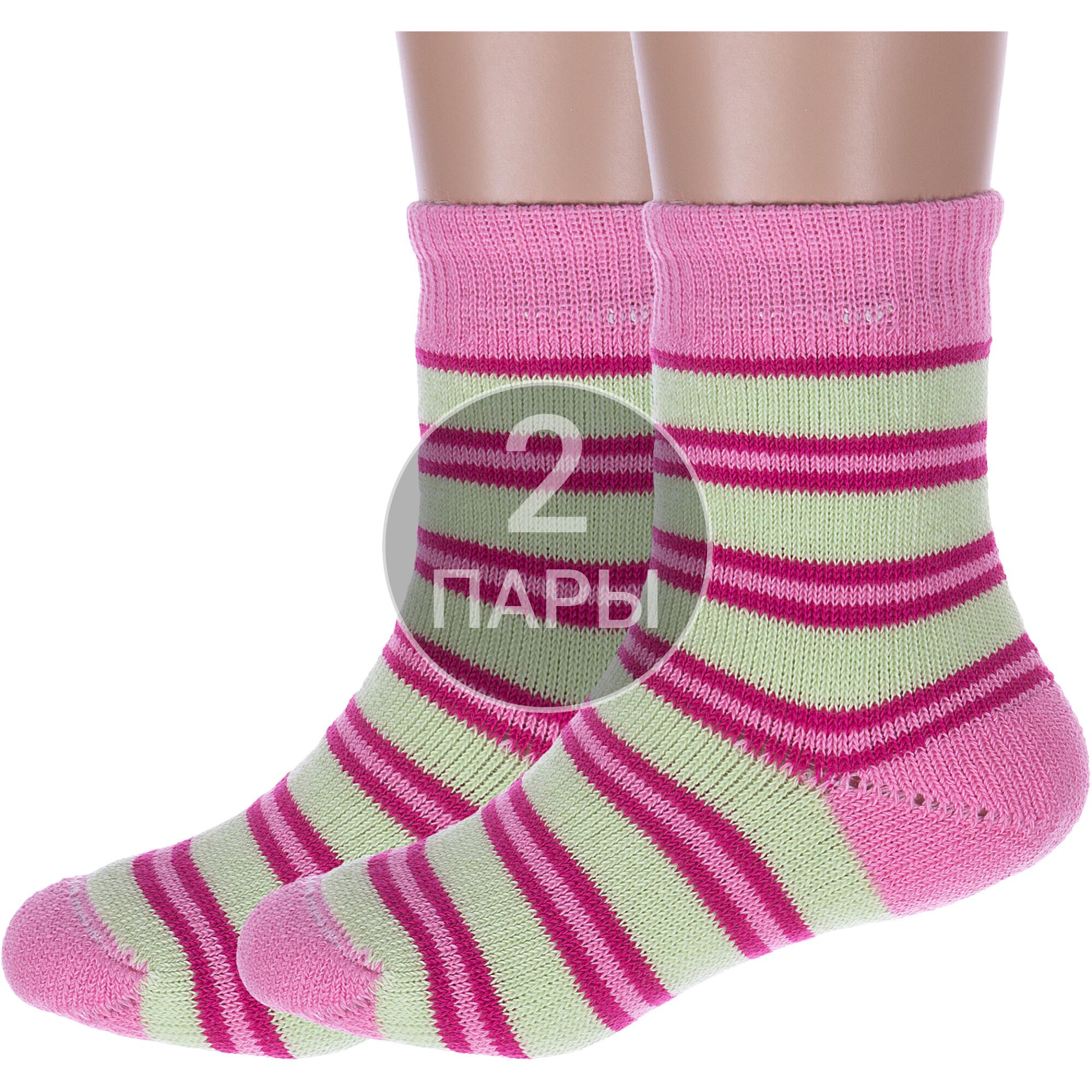 Комплект детских носков из 2 пар, межсезонные или зимние, укороченные, цвет салатово-розовый, теплые, повседневные, махровые, возможно бесшовные, принт (рисунок): полоски, с узором, состав: 98% хлопок, 1.5% эластан, 0.5% полиамид, арт. 2-С114. Производитель «ООО Альтаир, г. Орск, Оренбургская обл, Россия» под брендом «Альтаир».