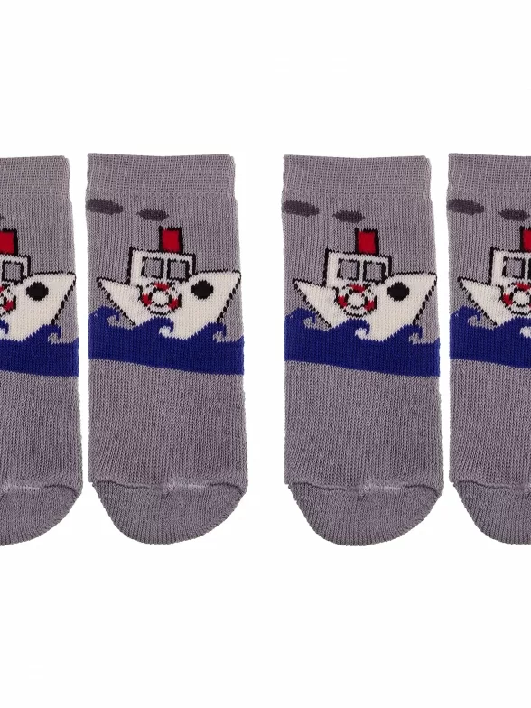 Комплект детских носков из 2 пар, межсезонные или зимние, средней длины, цвет серый, теплые, с принтом, махровые, состав: 98% хлопок, 1.5% эластан, 0.5% полиамид, арт. 2-С108. Производитель «ООО Альтаир, г. Орск, Оренбургская обл, Россия» под брендом «Альтаир».