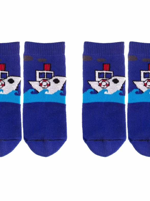 Комплект детских носков из 2 пар, межсезонные или зимние, средней длины, цвет синие, теплые, с принтом, махровые, состав: 98% хлопок, 1.5% эластан, 0.5% полиамид, арт. 2-С108. Производитель «ООО Альтаир, г. Орск, Оренбургская обл, Россия» под брендом «Альтаир».