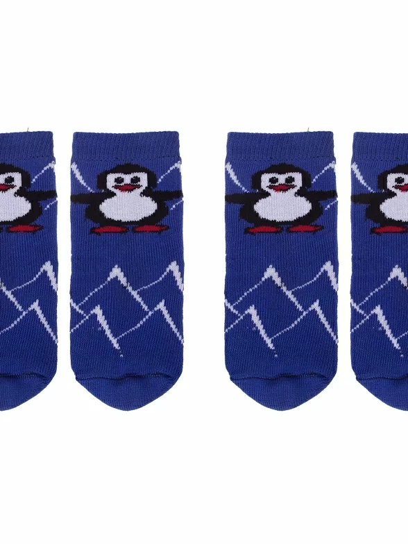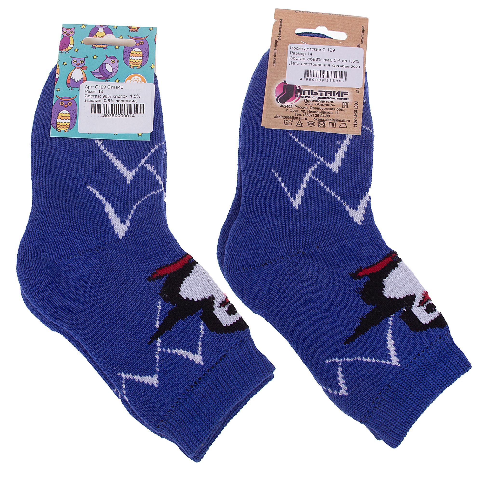 Комплект детских носков из 2 пар, межсезонные или зимние, укороченные, цвет синие, теплые, повседневные, махровые, шов обычный (не бесшовные), принт (рисунок): зимний, животные, с узором, крупные контрастные рисунки, состав: 98% хлопок, 1.5% эластан, 0.5% полиамид, арт. 2-С129. Производитель «ООО Альтаир, г. Орск, Оренбургская обл, Россия» под брендом «Альтаир».