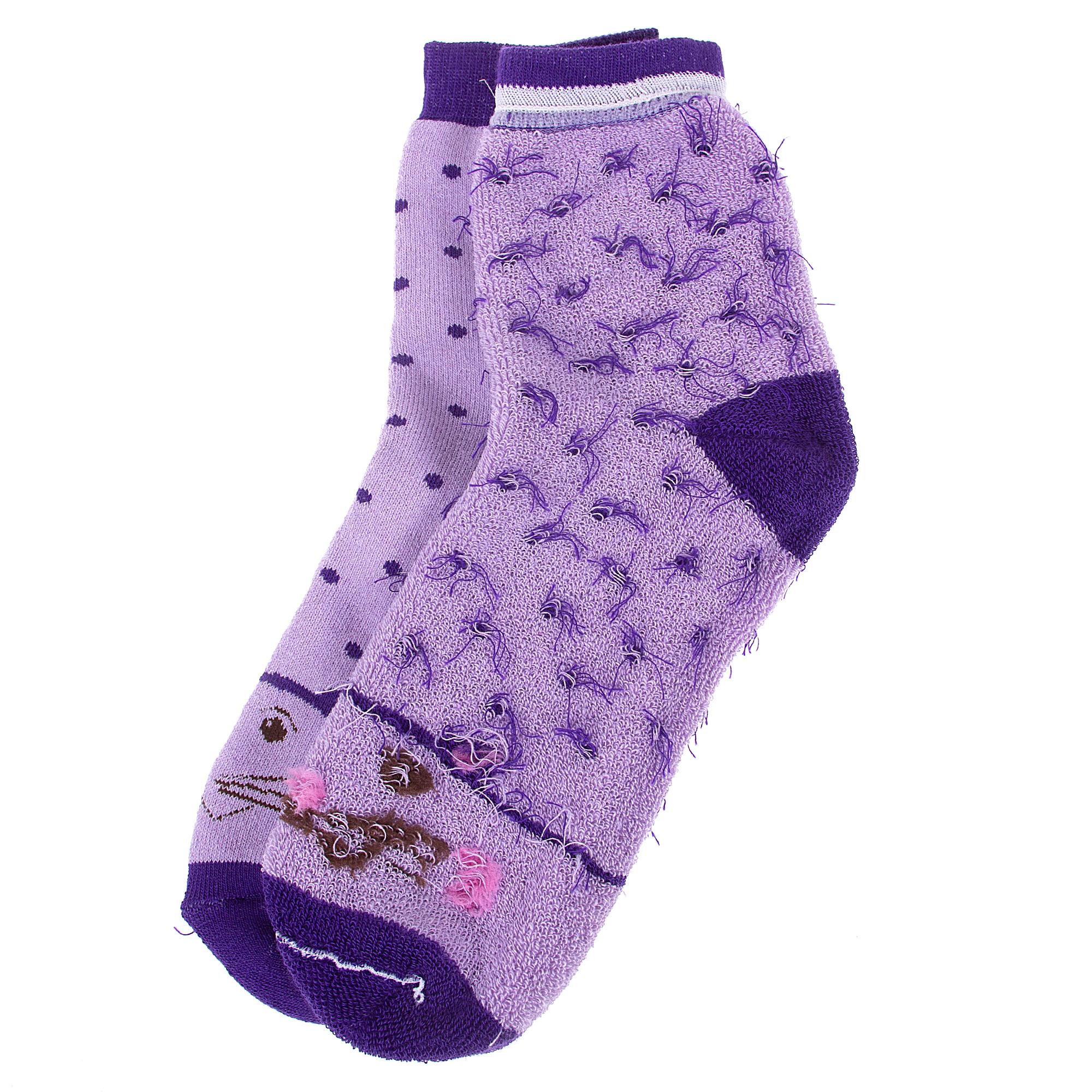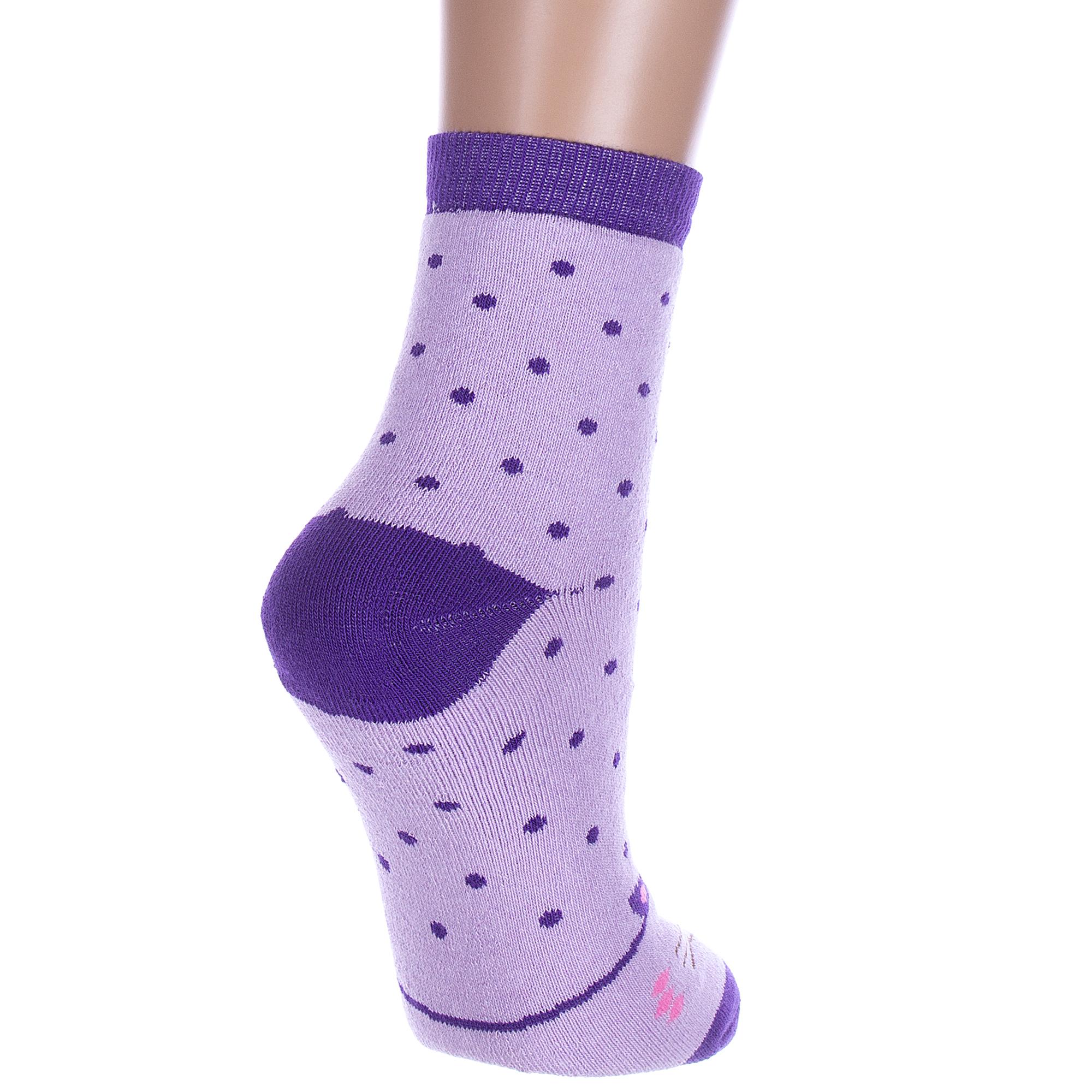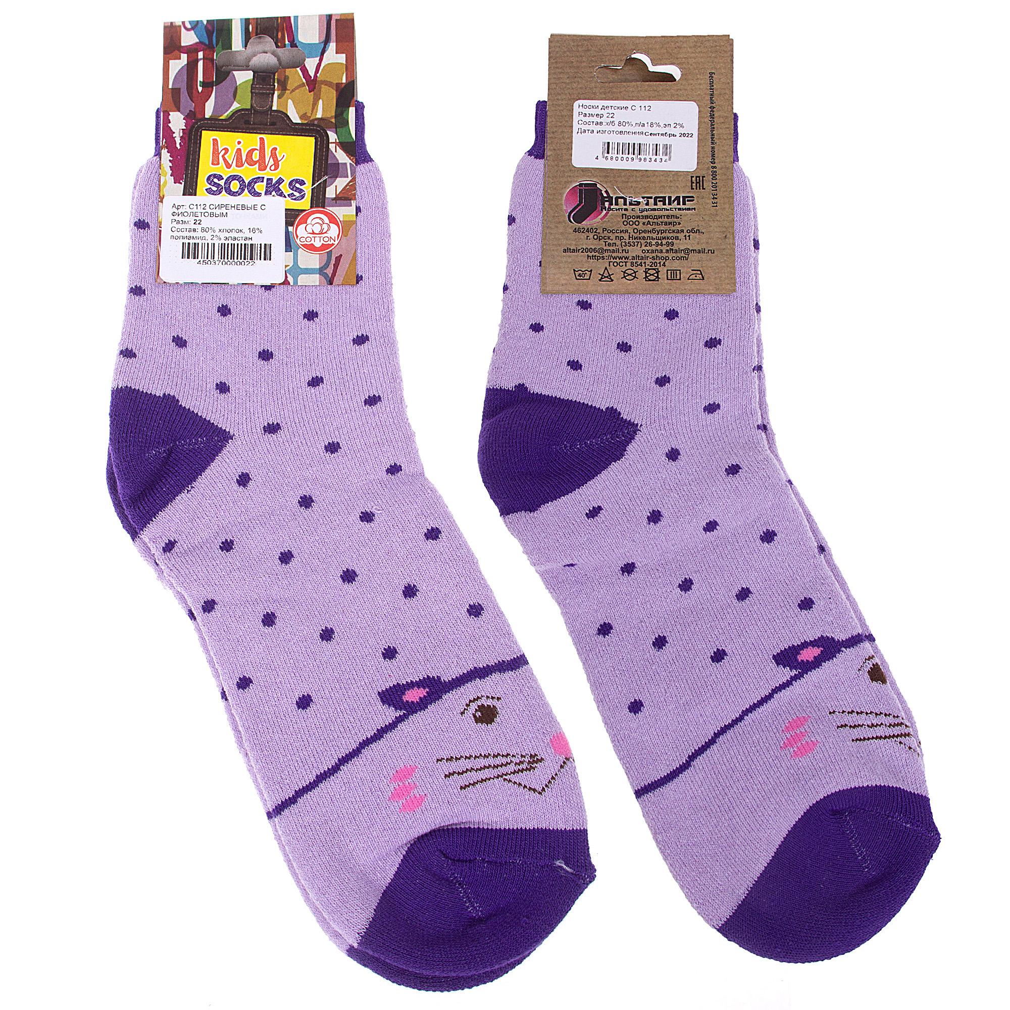 Комплект детских носков из 2 пар, межсезонные или зимние, укороченные, цвет сиренево-фиолетовый, теплые, повседневные, махровые, шов обычный (не бесшовные), принт (рисунок): контрастные пятка / мысок / резинка, животные, горох / точка, с узором, состав: 80% хлопок, 18% полиамид, 2% эластан, арт. 2-С112. Производитель «ООО Альтаир, г. Орск, Оренбургская обл, Россия» под брендом «Альтаир».