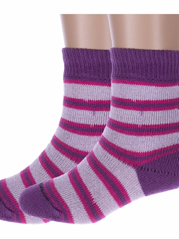 Комплект детских носков из 2 пар, межсезонные или зимние, укороченные, цвет сиренево-фиолетовый, теплые, повседневные, махровые, возможно бесшовные, принт (рисунок): полоски, с узором, состав: 98% хлопок, 1.5% эластан, 0.5% полиамид, арт. 2-С114. Производитель «ООО Альтаир, г. Орск, Оренбургская обл, Россия» под брендом «Альтаир».