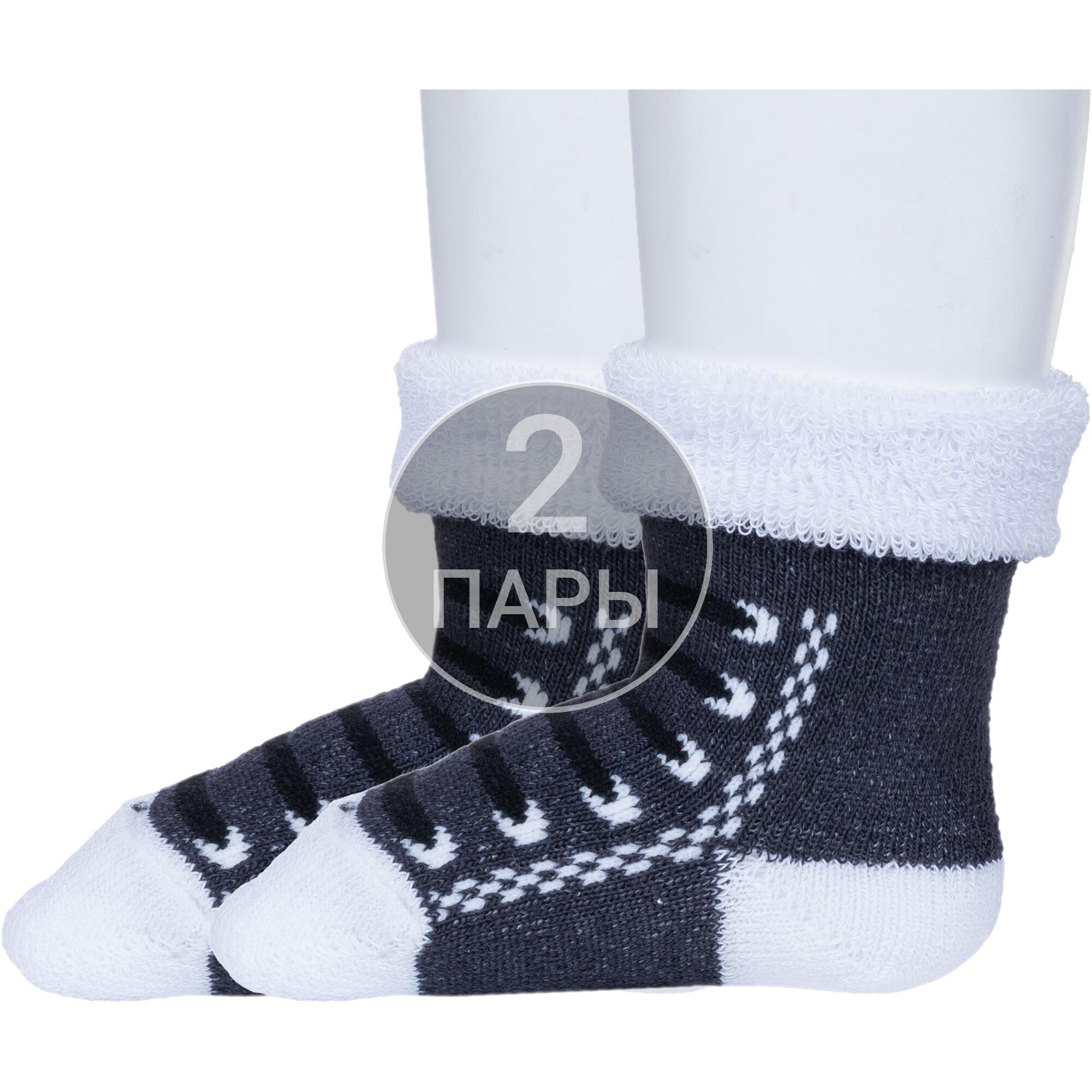Комплект детских носков из 2 пар, межсезонные или зимние, укороченные, цвет темно-серый, теплые, повседневные, махровые, шов обычный (не бесшовные), принт (рисунок): шнуровка (или имитация), с узором, состав: 98% хлопок, 0.5% полиамид, 1.5% эластан, арт. 2-С48. Производитель «ООО Альтаир, г. Орск, Оренбургская обл, Россия» под брендом «Альтаир».