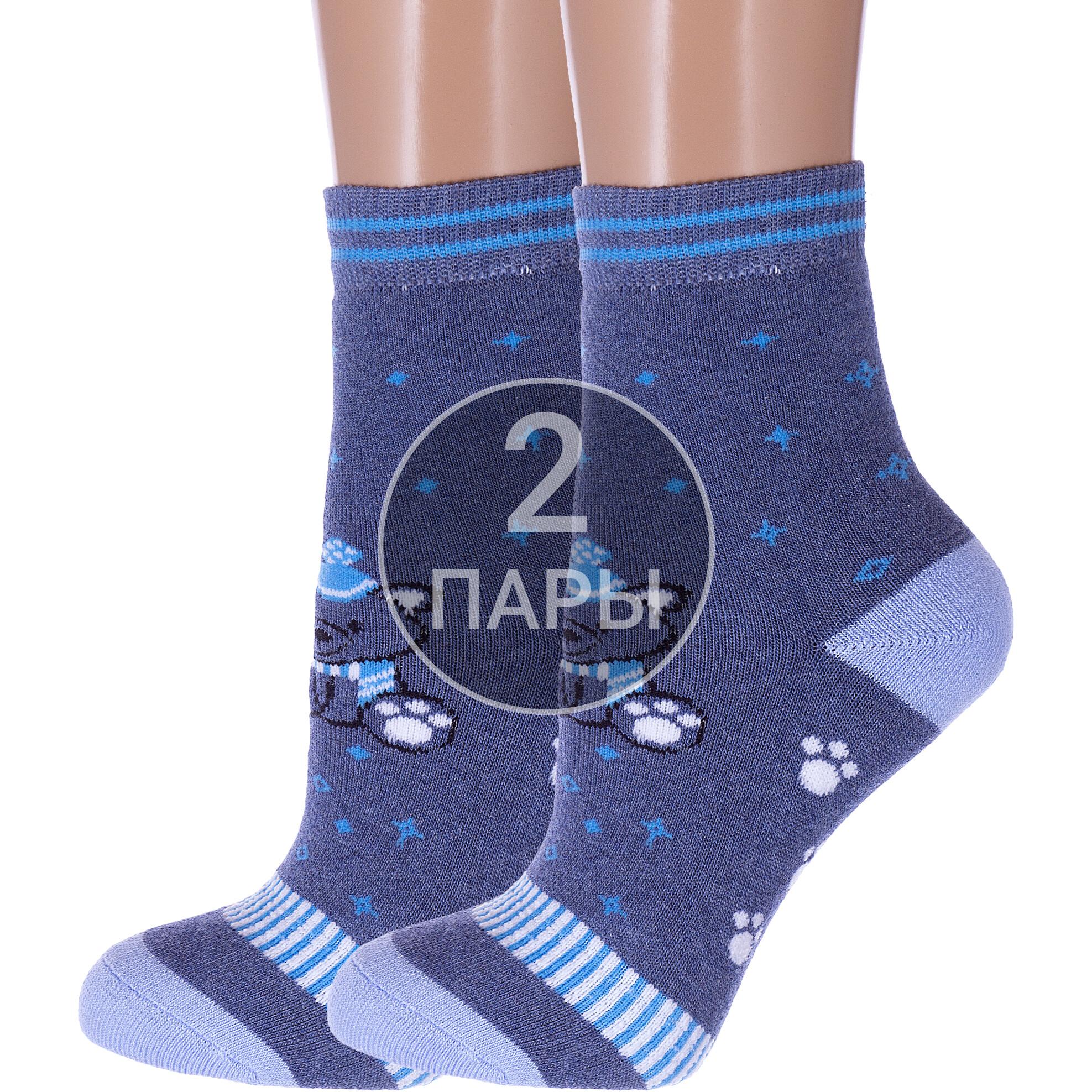 Комплект детских носков из 2 пар, межсезонные или зимние, укороченные, цвет джинсовый, теплые, с принтом, махровые, состав: 70% хлопок, 17% полипропилен, 10% полиамид, 3% эластан, арт. 2-С-625М. Производитель «КРАСНАЯ ВЕТКА» Россия под брендом «Красная ветка».