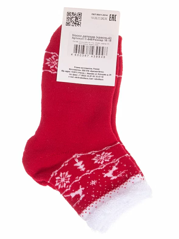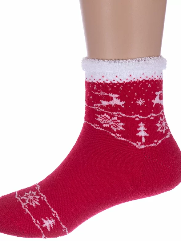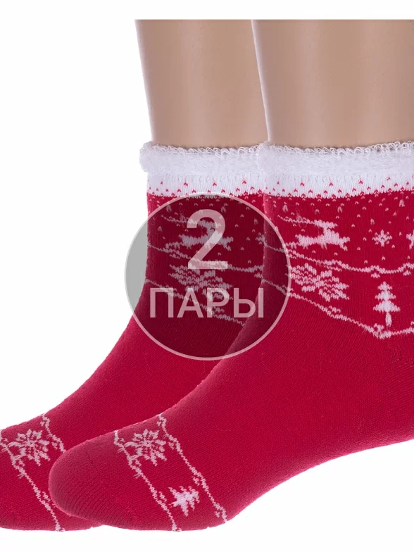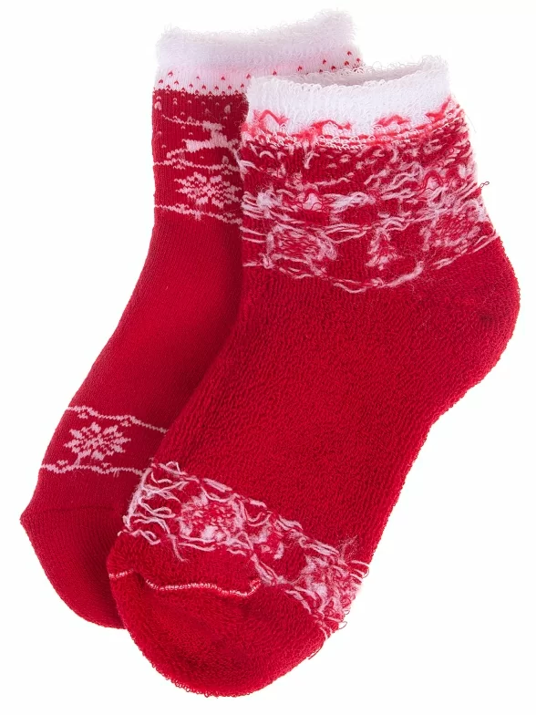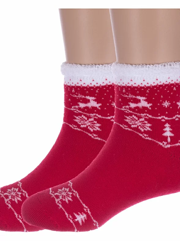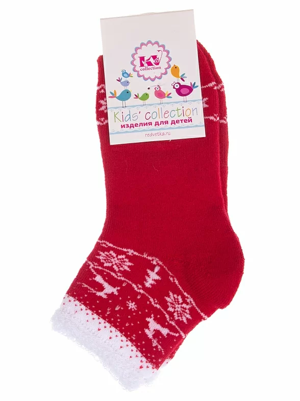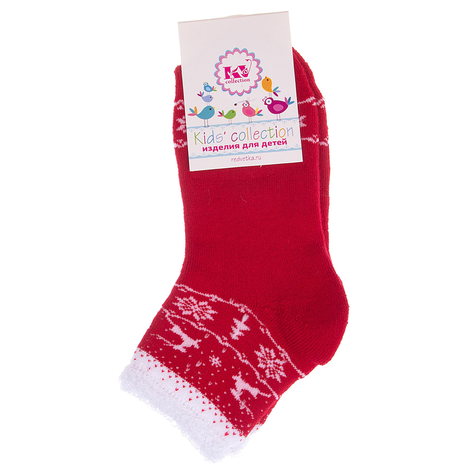 Комплект детских носков из 2 пар, межсезонные или зимние, укороченные, цвет красный, теплые, состав: 80% хлопок, 11% полиамид, 6% полипропилен, 3% эластан, арт. 2-С-645. Производитель «КРАСНАЯ ВЕТКА» Россия под брендом «Красная ветка».