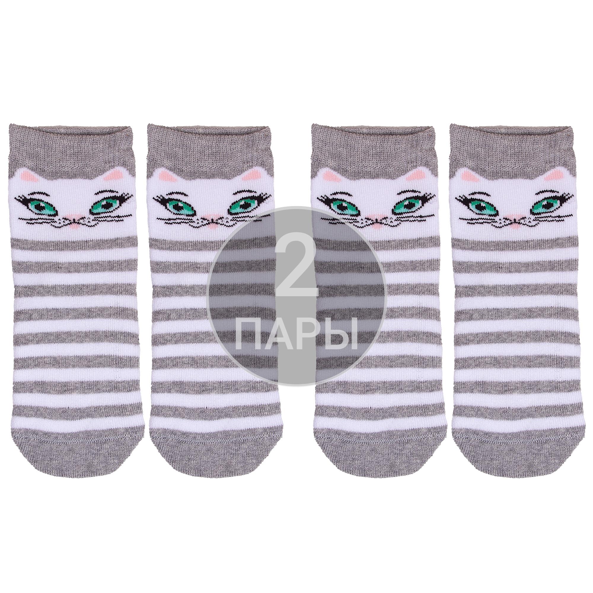 Комплект детских носков из 2 пар, межсезонные или зимние, укороченные, цвет серый, теплые, состав: 85% хлопок, 10% полиамид, 3% полипропилен, 2% эластан, арт. 2-С-1606. Производитель «КРАСНАЯ ВЕТКА» Россия под брендом «Красная ветка».