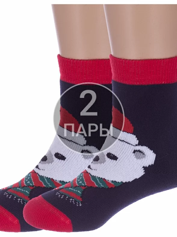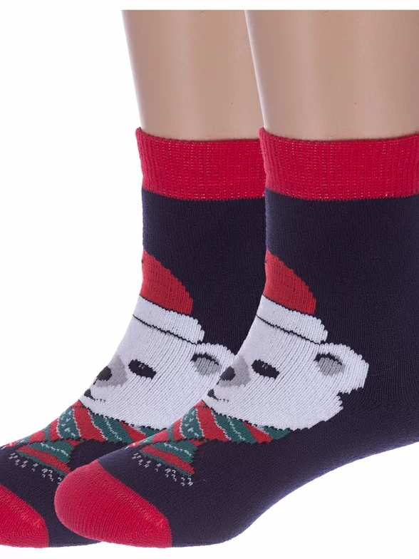 Комплект детских носков из 2 пар, межсезонные или зимние, укороченные, цвет синие, теплые, состав: 61% хлопок, 29% полипропилен, 8% полиамид, 2% эластан, арт. 2-С-1607. Производитель «КРАСНАЯ ВЕТКА» Россия под брендом «Красная ветка».