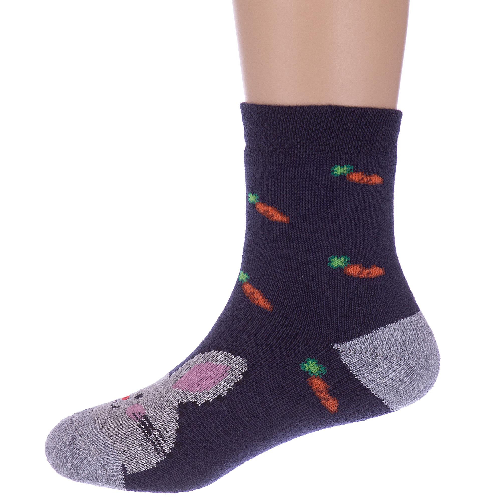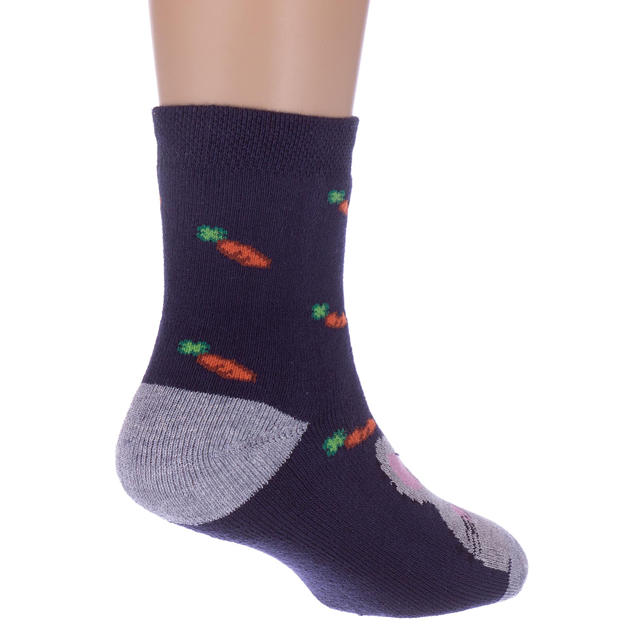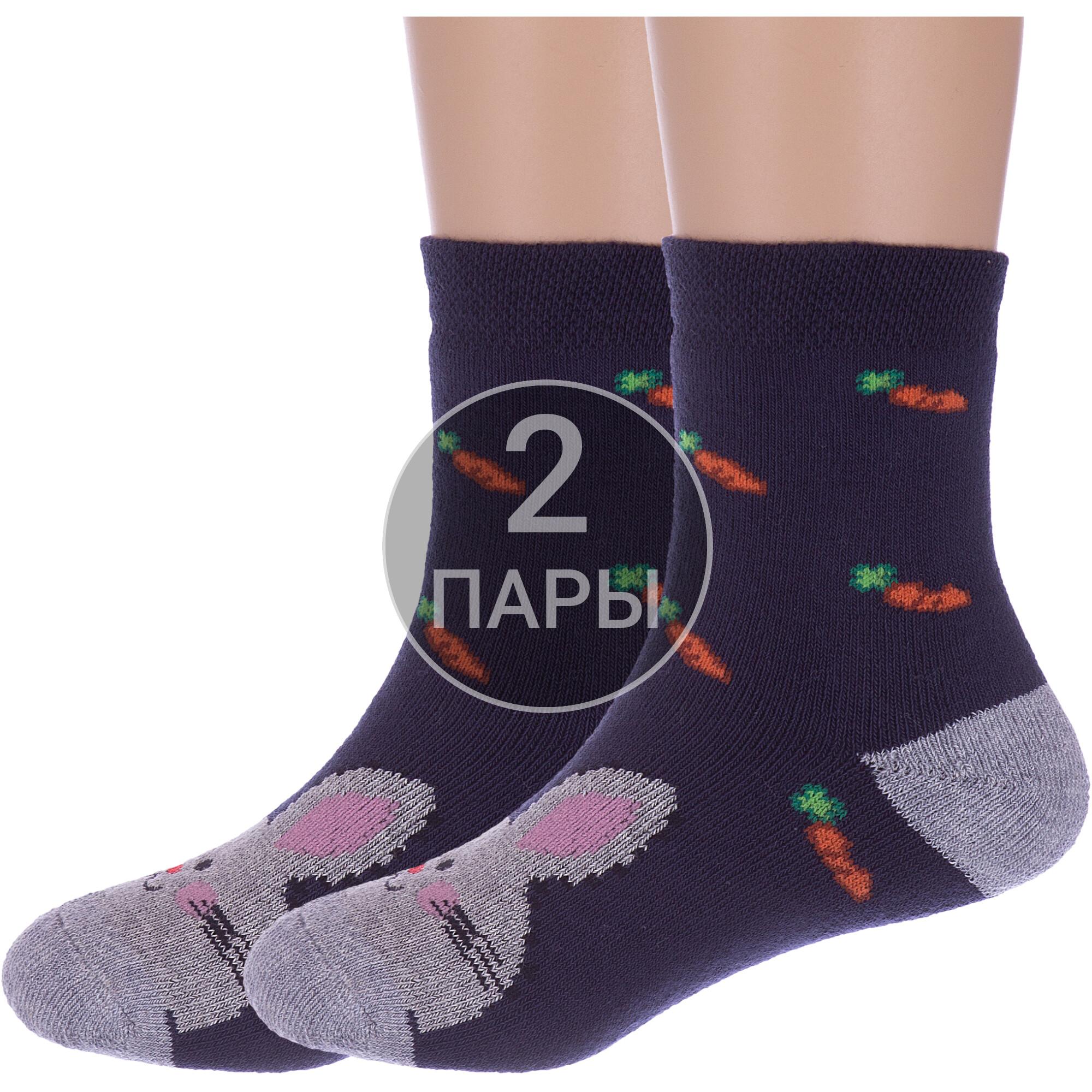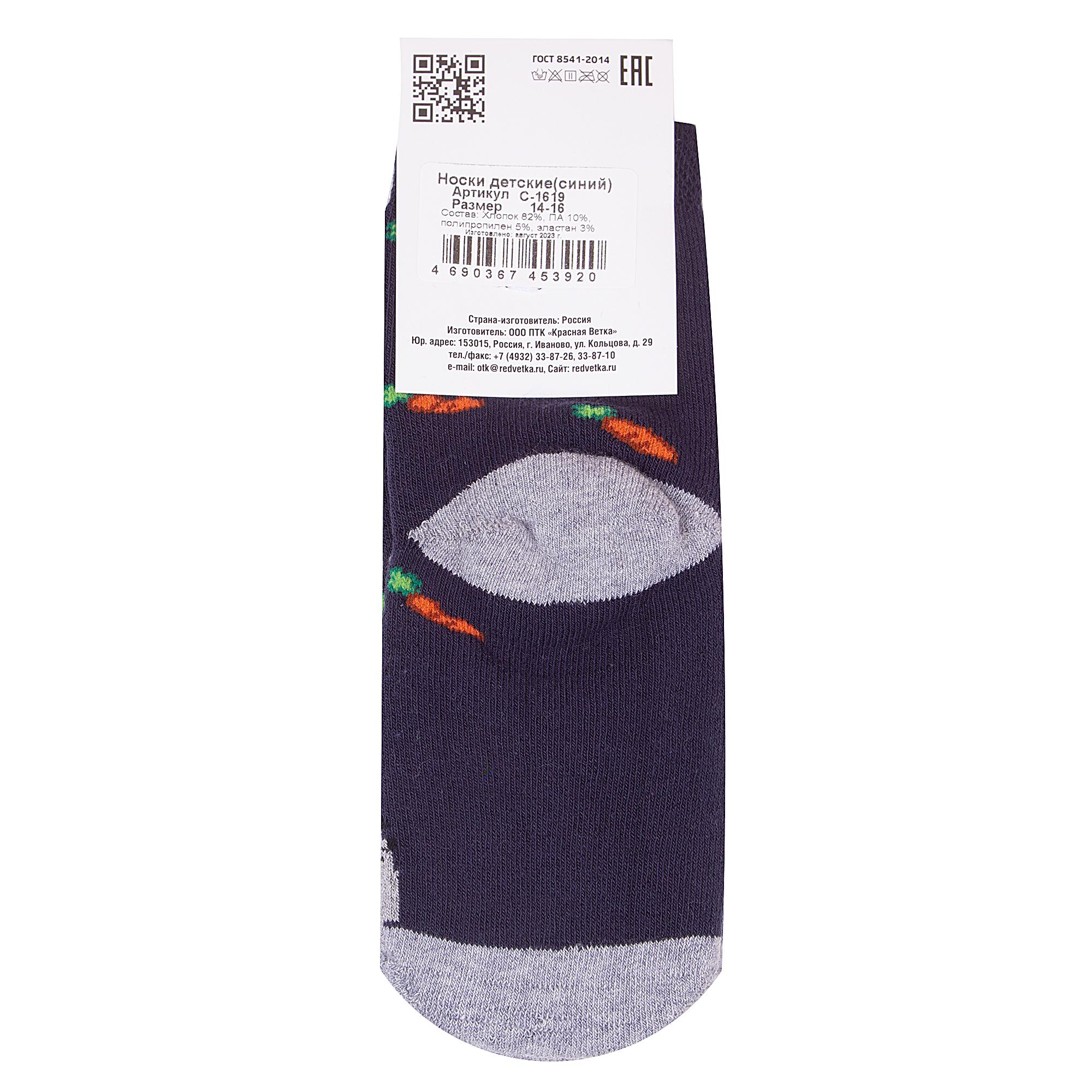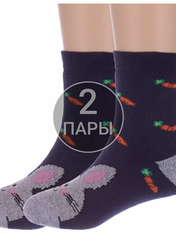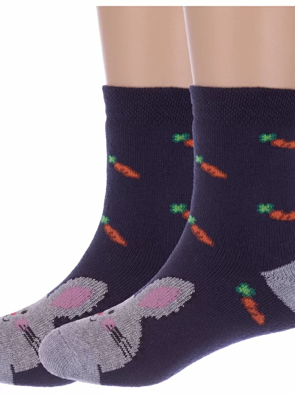 Комплект детских носков из 2 пар, межсезонные или зимние, укороченные, цвет синие, теплые, состав: 82% хлопок, 10% полиамид, 5% полипропилен, 3% эластан, арт. 2-С-1619. Производитель «КРАСНАЯ ВЕТКА» Россия под брендом «Красная ветка».