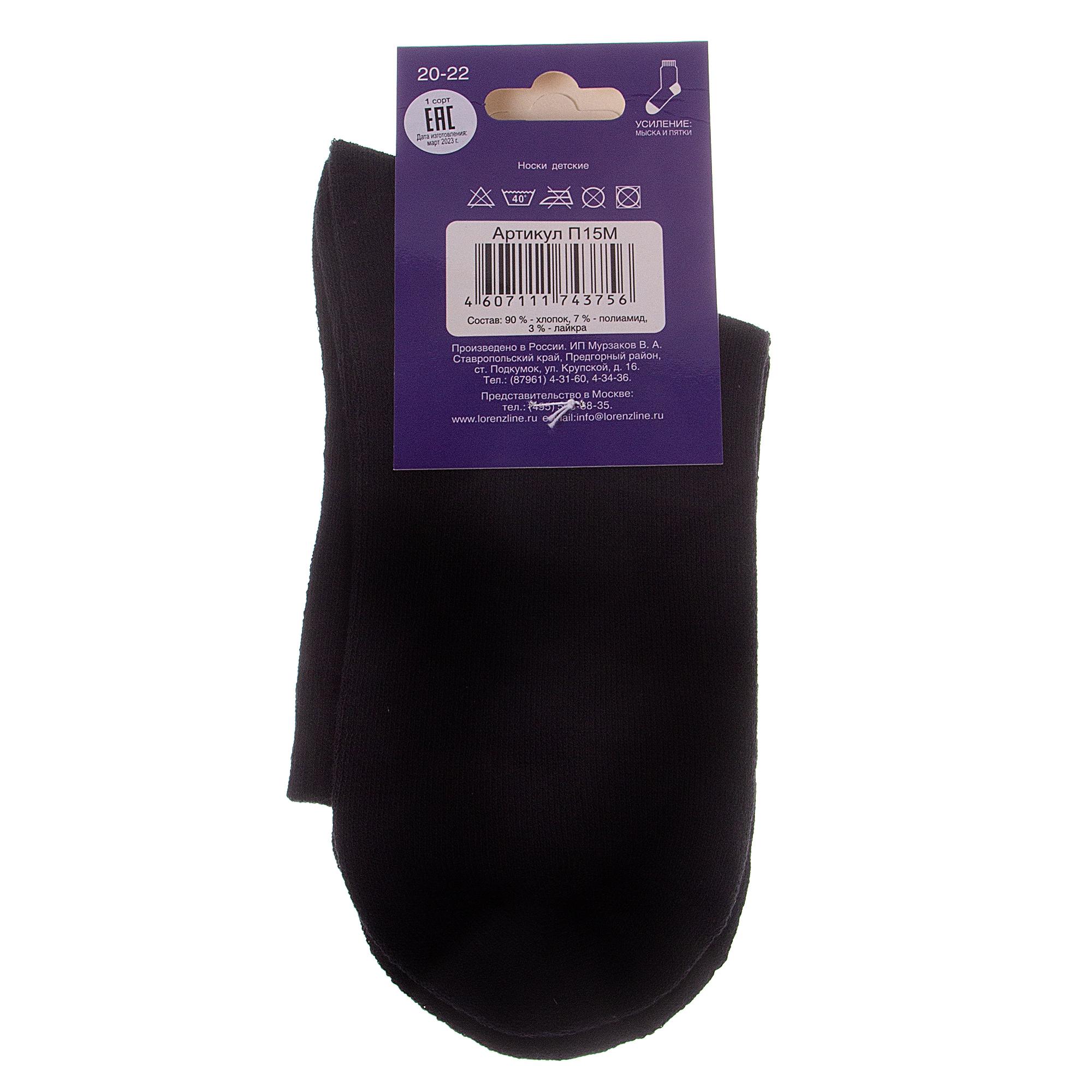 Комплект детских носков из 2 пар, межсезонные или зимние, укороченные, цвет черный, теплые, махровые, классические, состав: 90% хлопок, 7% полиамид, 3% эластан (лайкра), арт. 2-П15М. Производитель «ИП Мурзаков В.А., Ставропольский край, Россия» под брендом «Lorenzline».