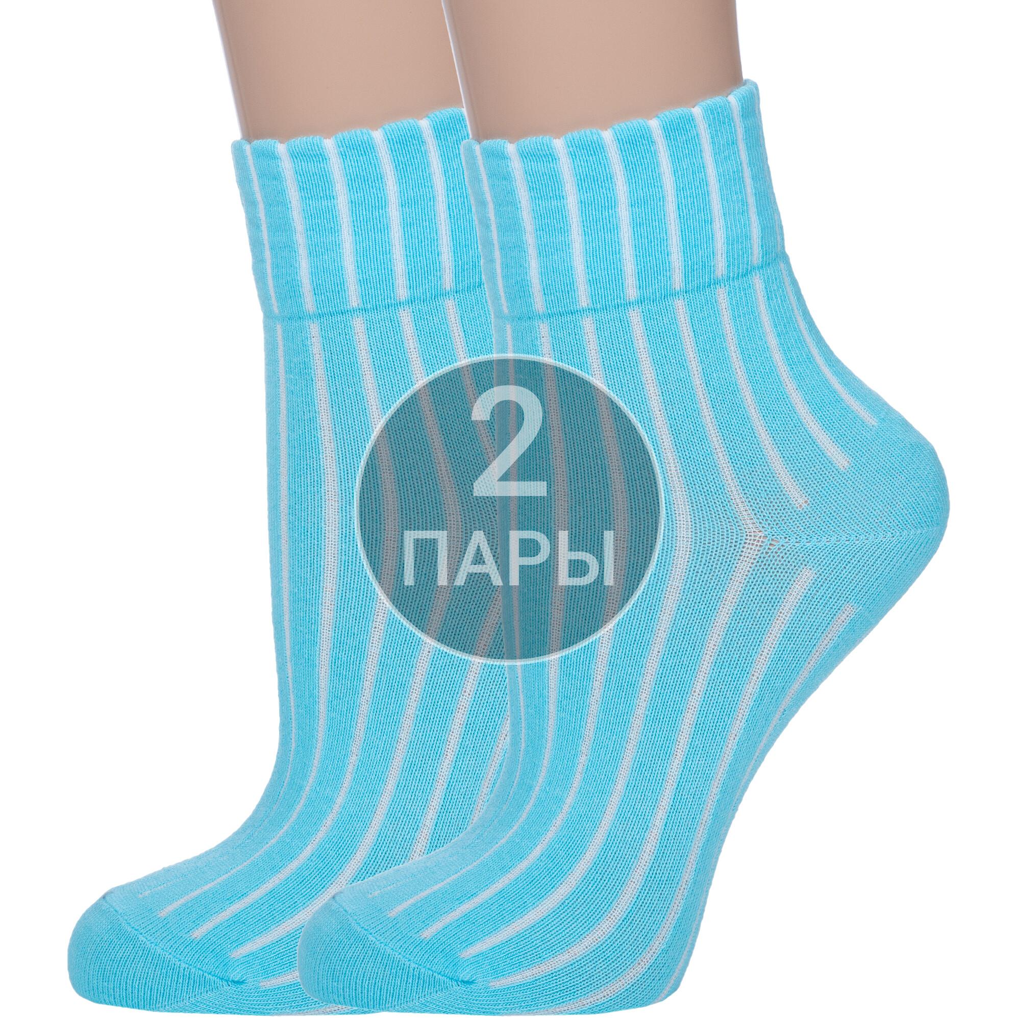 Комплект детских носков из 2 пар, круглогодичные, укороченные, цвет бирюзовый, классические, шов обычный (не бесшовные), принт (рисунок): полоски, в рубчик, с узором, состав: 65% хлопок, 32% полиамид, 3% эластан, арт. 2-ВК41000 001. Производитель «ООО «АКОС ТЭКС», Московская область, Россия» под брендом «Akos».