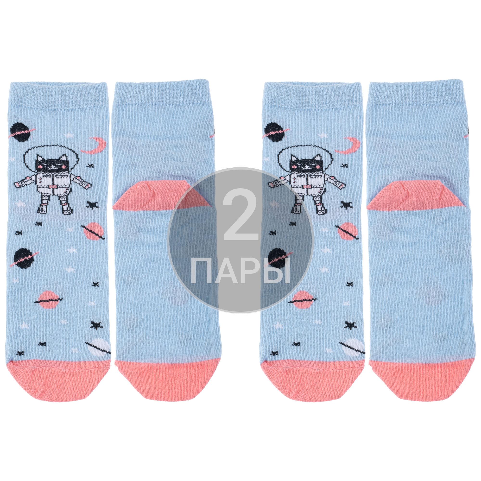 Комплект детских носков из 2 пар, круглогодичные, укороченные, цвет голубой, повседневные, шов обычный (не бесшовные), принт (рисунок): космос, животные, с узором, крупные контрастные рисунки, состав: 66% хлопок, 31% полиамид, 3% эластан, арт. 2-CK41800 040. Производитель «ООО «АКОС ТЭКС», Московская область, Россия» под брендом «Akos».