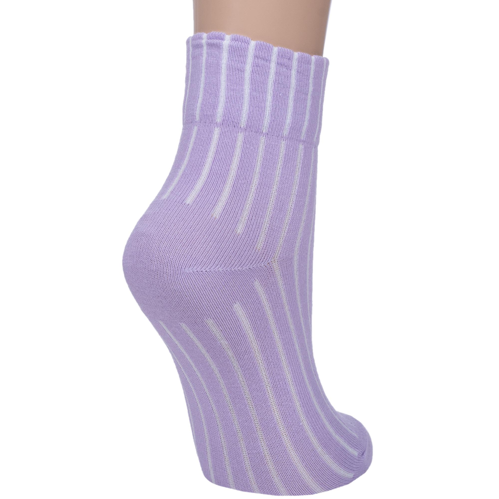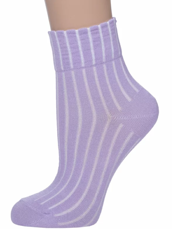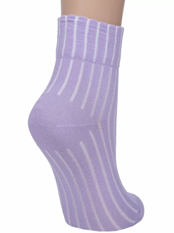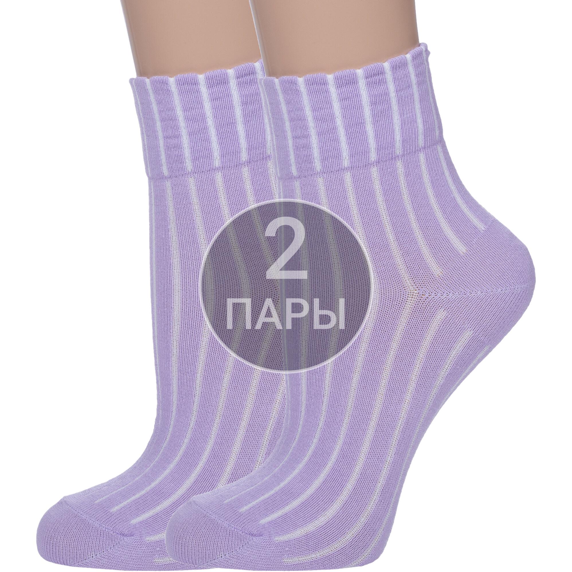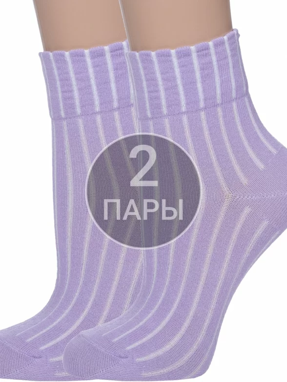 Комплект детских носков из 2 пар, круглогодичные, укороченные, цвет сиреневый, классические, шов обычный (не бесшовные), принт (рисунок): полоски, в рубчик, с узором, состав: 65% хлопок, 32% полиамид, 3% эластан, арт. 2-ВК41000 001. Производитель «ООО «АКОС ТЭКС», Московская область, Россия» под брендом «Akos».