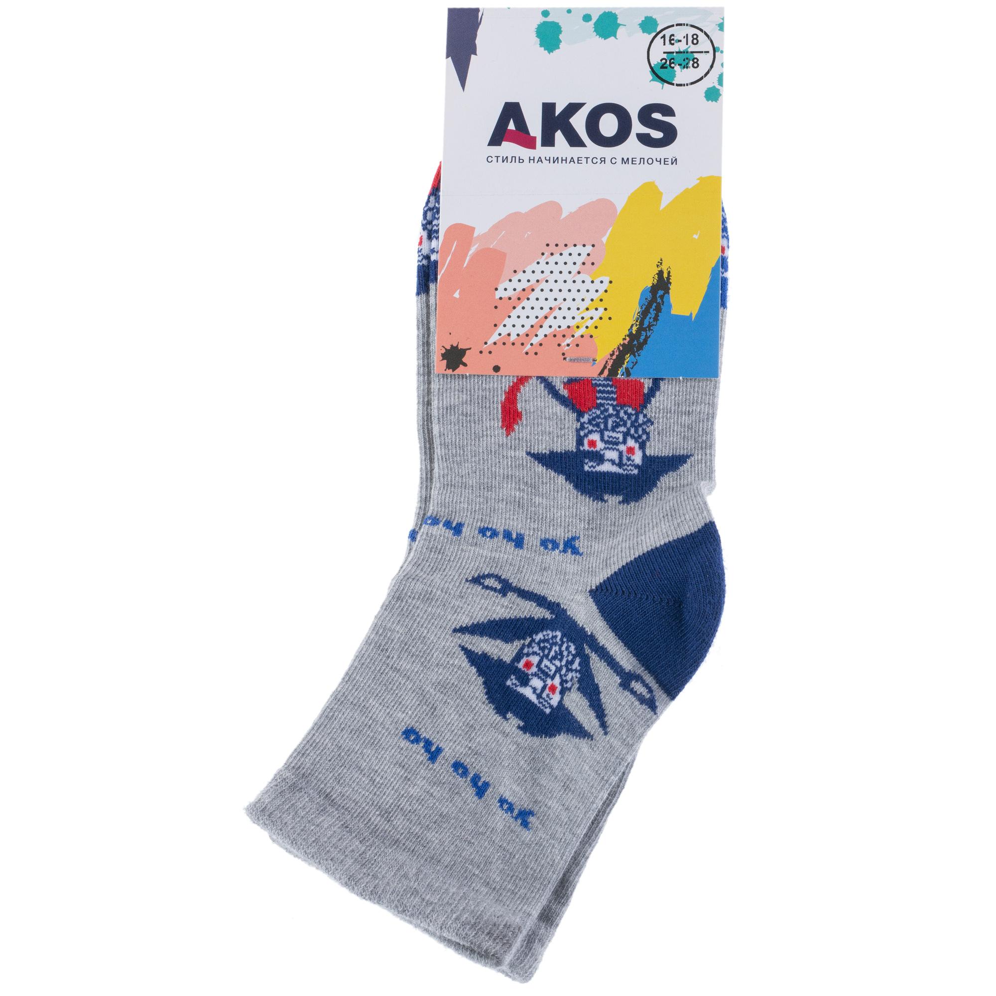 Комплект детских носков из 2 пар, круглогодичные, укороченные, цвет светло-серый меланж, повседневные, шов обычный (не бесшовные), принт (рисунок): с узором, люди, море, фильмы / сериалы / мультики, крупные контрастные рисунки, состав: 68% хлопок, 29% полиамид, 3% эластан, арт. 2-CK41800 044. Производитель «ООО «АКОС ТЭКС», Московская область, Россия» под брендом «Akos».
