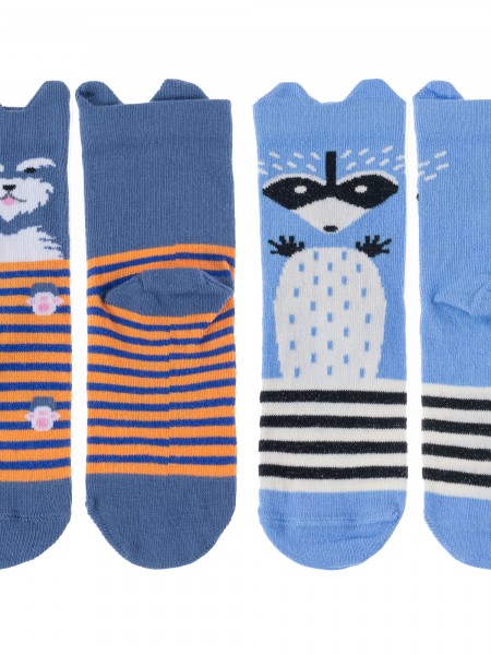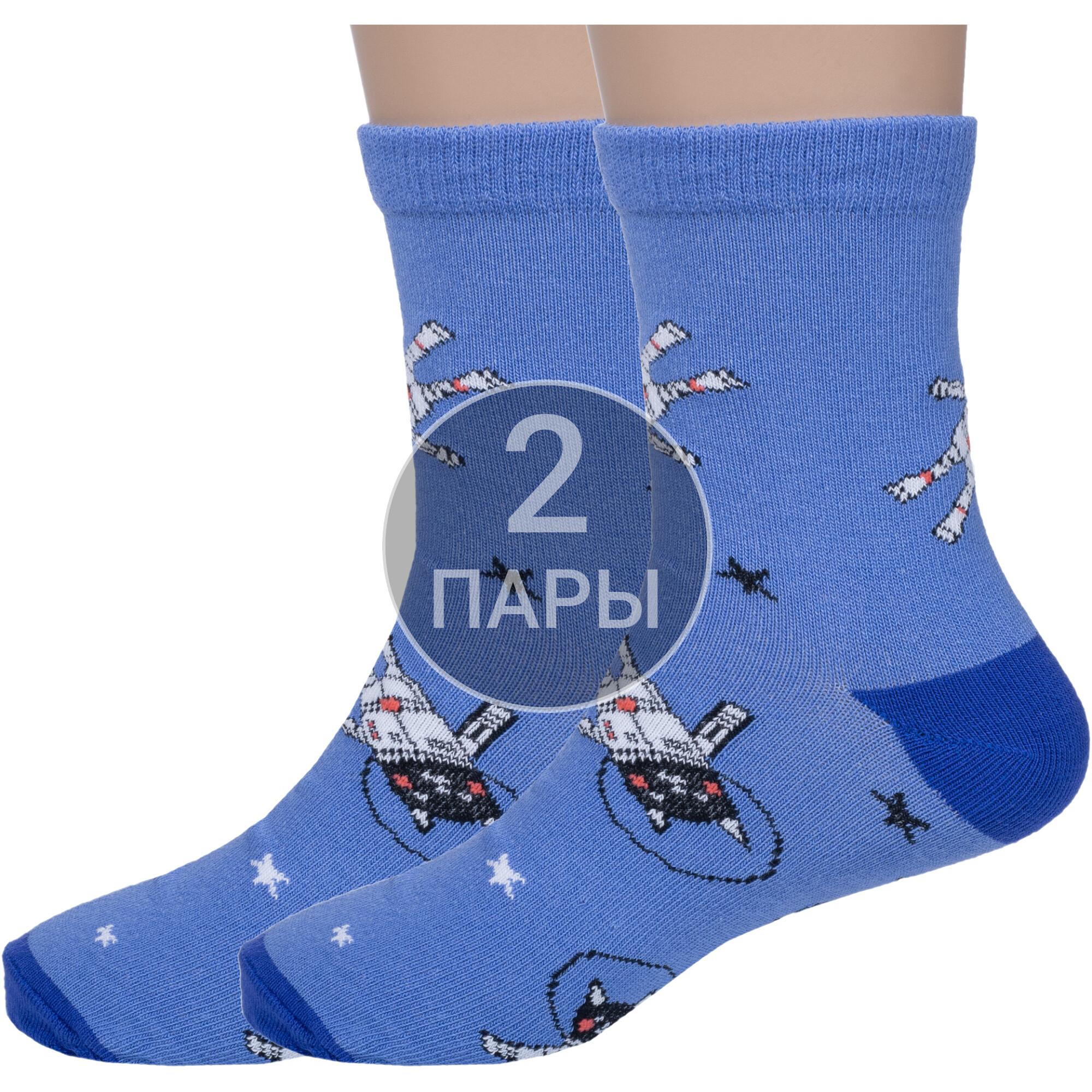 Комплект детских носков из 2 пар, круглогодичные, укороченные, цвет темно-голубой, повседневные, шов обычный (не бесшовные), принт (рисунок): животные, космос, крупные контрастные рисунки, с узором, состав: 66% хлопок, 31% полиамид, 3% эластан, арт. 2-CK41800 042. Производитель «ООО «АКОС ТЭКС», Московская область, Россия» под брендом «Akos».