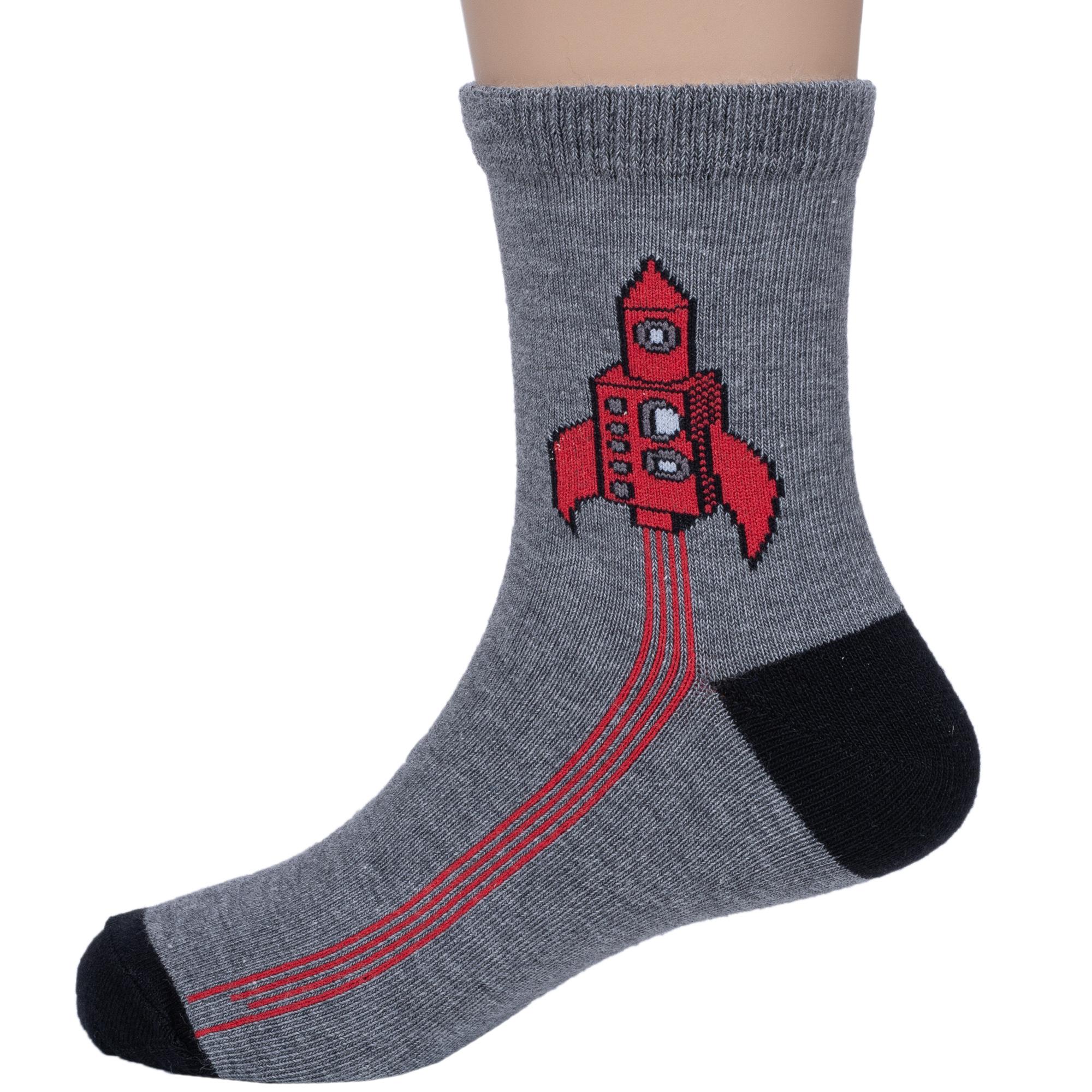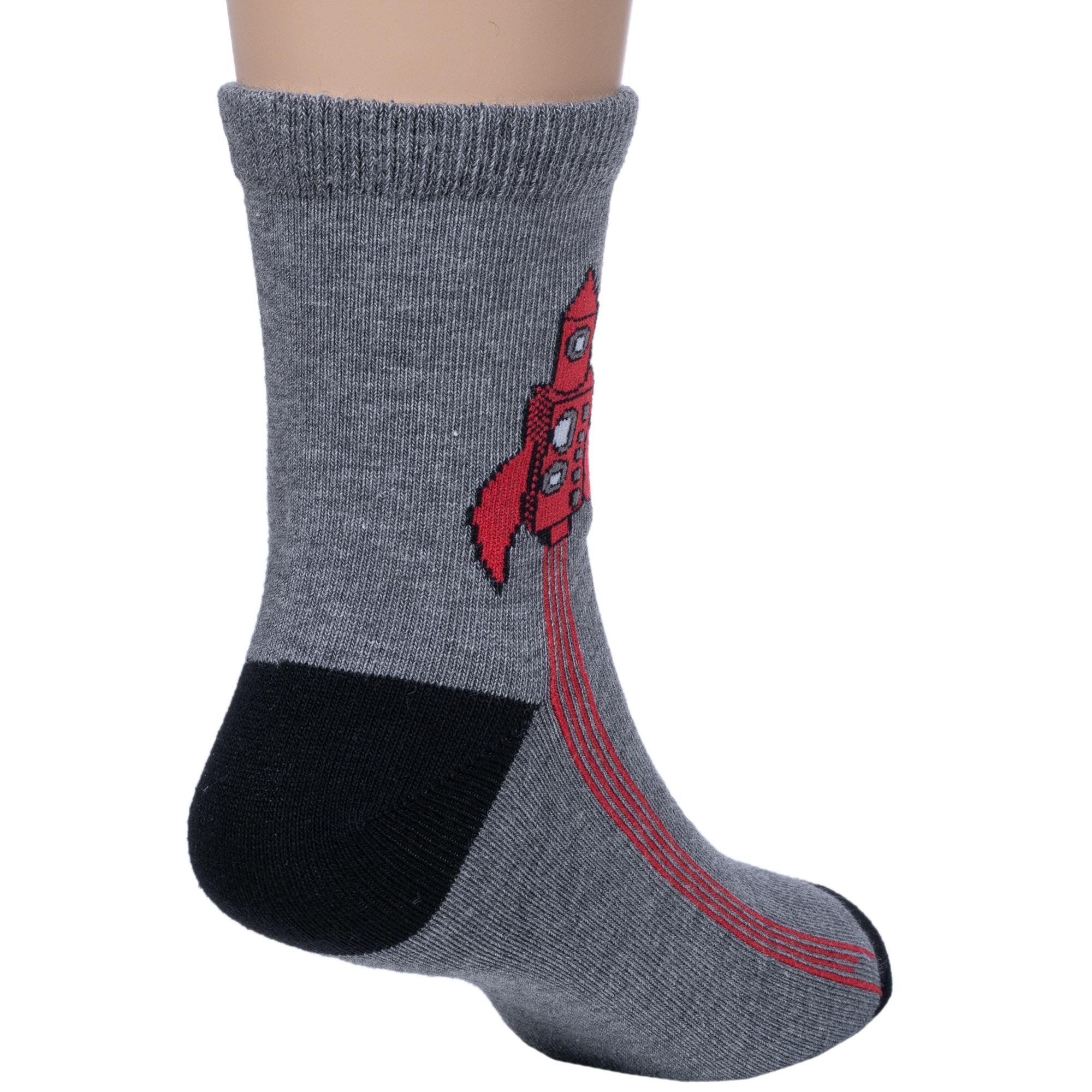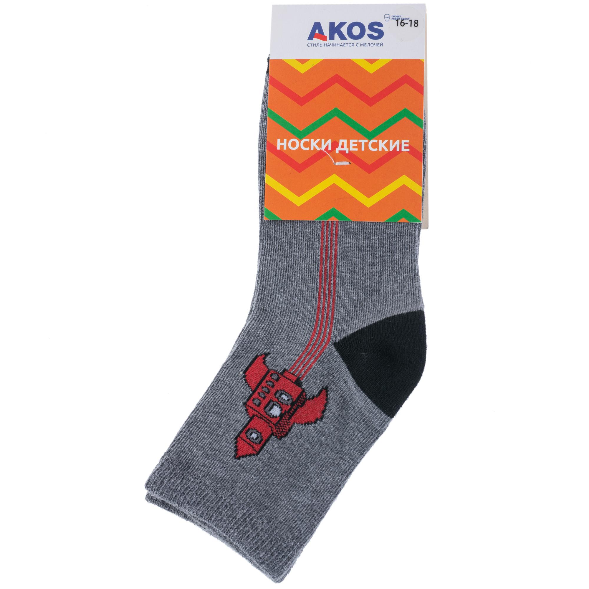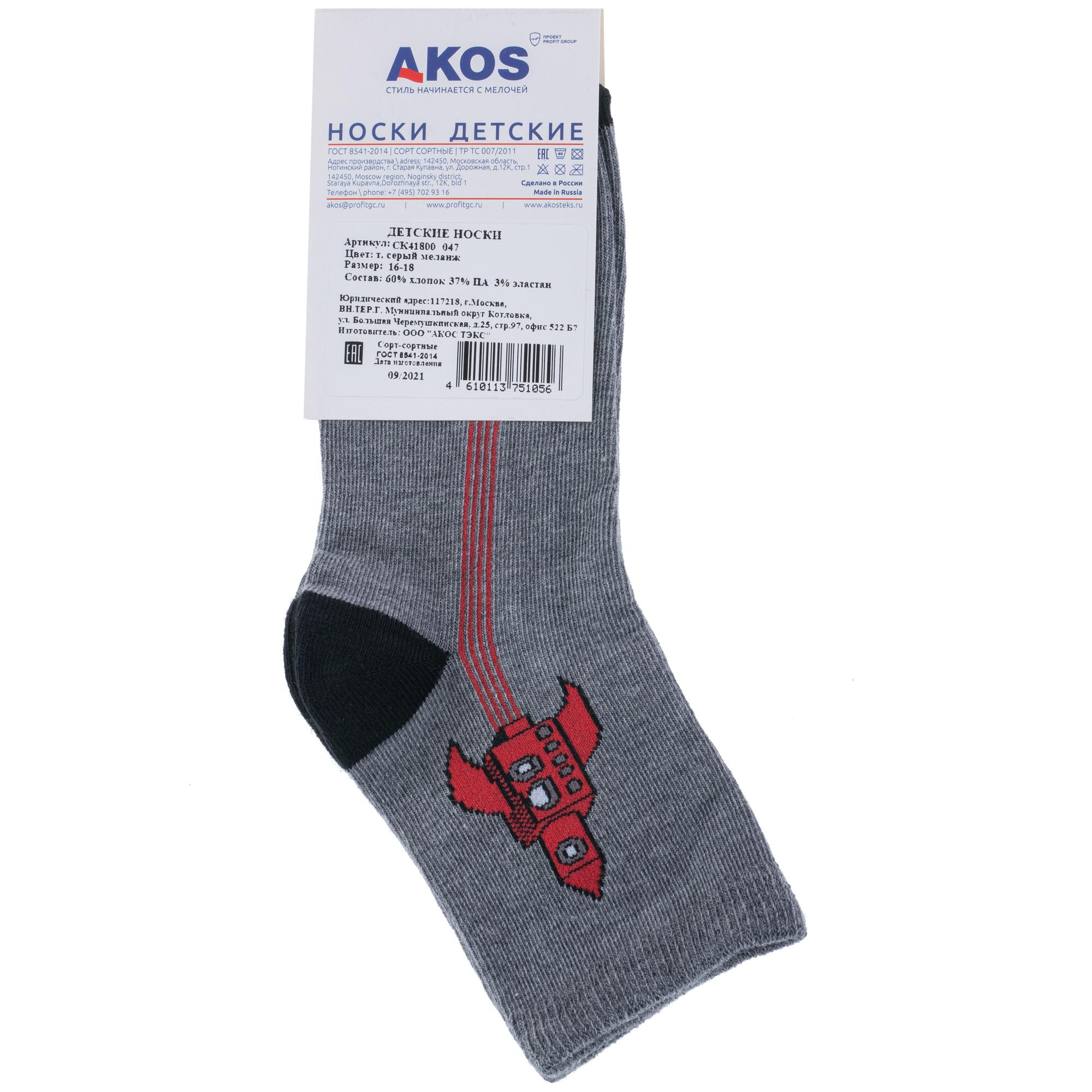 Комплект детских носков из 2 пар, круглогодичные, укороченные, цвет темно-серый меланж, повседневные, шов обычный (не бесшовные), принт (рисунок): транспорт, космос, с узором, крупные контрастные рисунки, состав: 60% хлопок, 37% полиамид, 3% эластан, арт. 2-CK41800 047. Производитель «ООО «АКОС ТЭКС», Московская область, Россия» под брендом «Akos».