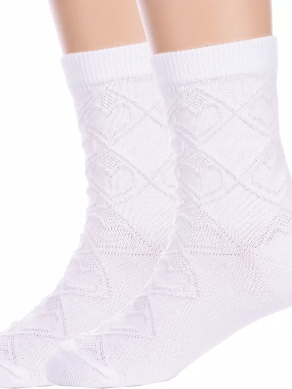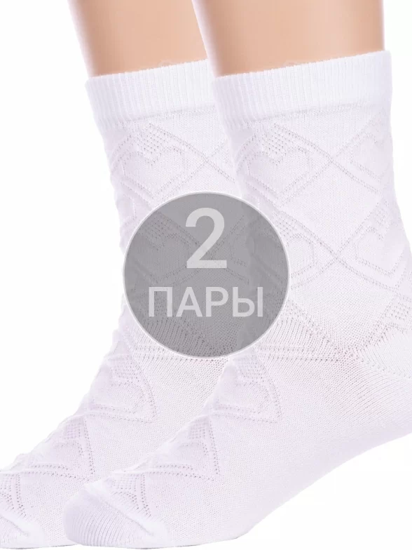 Комплект детских носков из 2 пар, летние, укороченные, цвет белый, ажурные, шов обычный (не бесшовные), принт (рисунок): сердечки / поцелуи / любовь, клетка, аргайл, с узором, однотонный, состав: 80% хлопок, 18% полиамид, 2% эластан, арт. 2-С35. Производитель «ООО Альтаир, г. Орск, Оренбургская обл, Россия» под брендом «Альтаир».