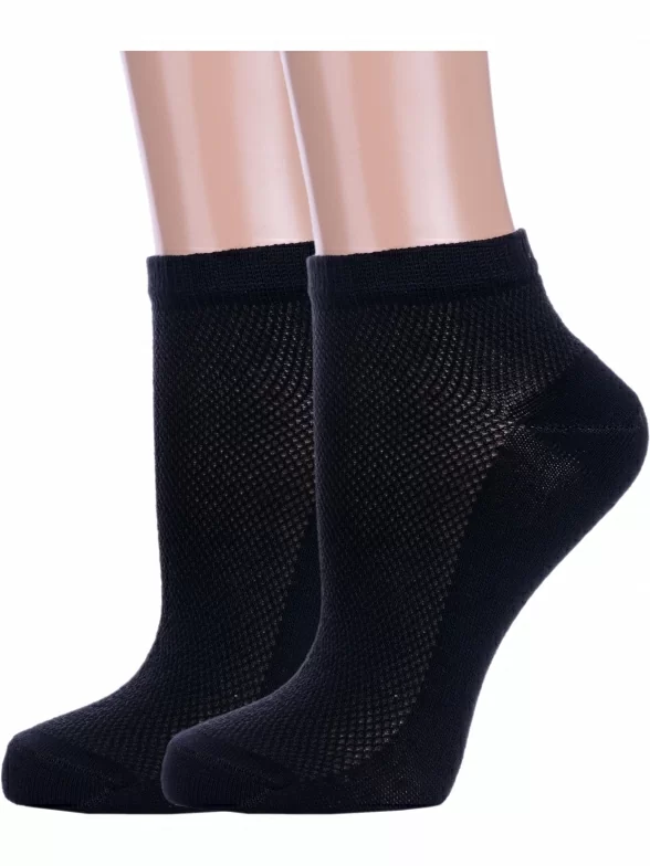 Комплект детских носков из 2 пар, летние, укороченные, цвет черный, в сеточку, классические, возможно бесшовные, принт (рисунок): однотонный, без рисунков/узоров, состав: 80% хлопок, 18% полиамид, 2% эластан, арт. 2-Д82. Производитель «ООО Альтаир, г. Орск, Оренбургская обл, Россия» под брендом «Альтаир».
