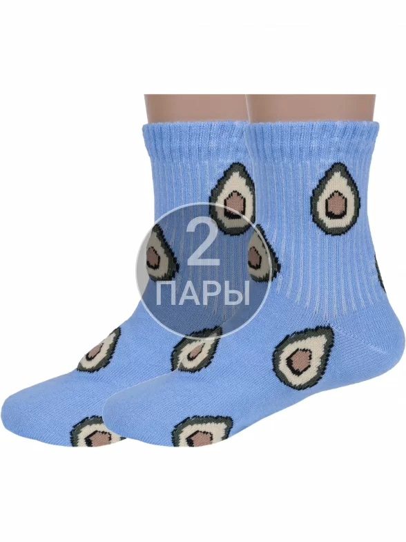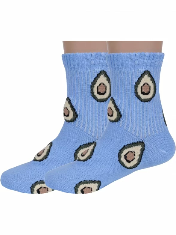 Комплект детских носков из 2 пар, круглогодичные, укороченные, цвет голубой, повседневные, шов обычный (не бесшовные), принт (рисунок): с узором, еда и напитки, овощи / фрукты / ягоды, состав: 80% хлопок, 18% полиамид, 2% эластан, арт. 2-А223. Производитель «ООО Альтаир, г. Орск, Оренбургская обл, Россия» под брендом «Альтаир».