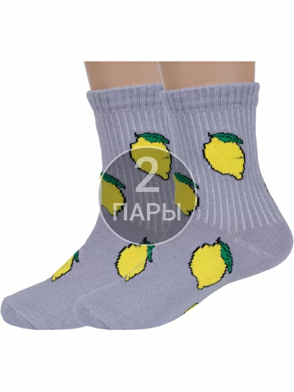 Комплект детских носков из 2 пар, круглогодичные, укороченные, цвет серый, повседневные, шов обычный (не бесшовные), принт (рисунок): овощи / фрукты / ягоды, с узором, еда и напитки, состав: 80% хлопок, 18% полиамид, 2% эластан, арт. 2-А224. Производитель «ООО Альтаир, г. Орск, Оренбургская обл, Россия» под брендом «Альтаир».