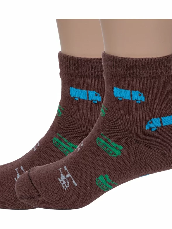 Комплект детских носков из 2 пар, круглогодичные, укороченные, цвет шоколад, прикольные, состав: 80% хлопок, 18% полиамид, 2% эластан, фабричный артикул 2-А56. Производитель «ООО Альтаир, г. Орск, Оренбургская обл, Россия» под брендом «Альтаир».