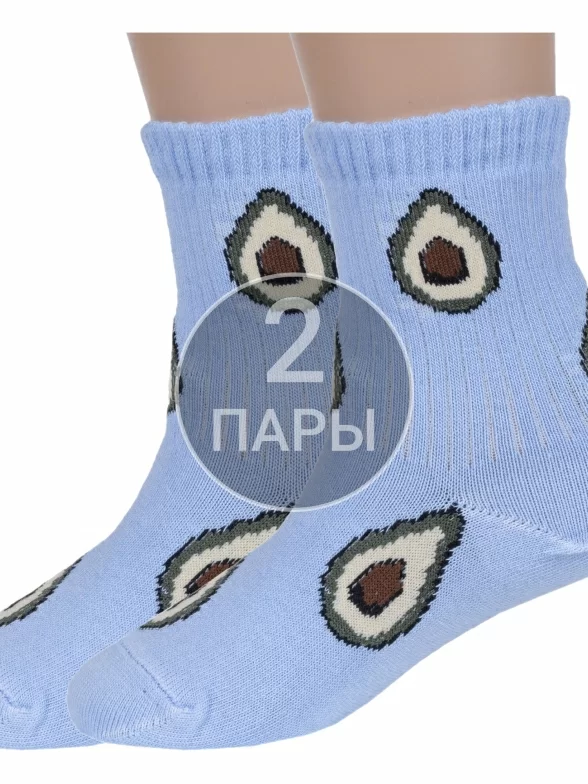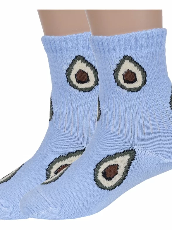 Комплект детских носков из 2 пар, круглогодичные, укороченные, цвет светло-голубой, повседневные, шов обычный (не бесшовные), принт (рисунок): овощи / фрукты / ягоды, еда и напитки, с узором, состав: 80% хлопок, 18% полиамид, 2% эластан, арт. 2-А223. Производитель «ООО Альтаир, г. Орск, Оренбургская обл, Россия» под брендом «Альтаир».