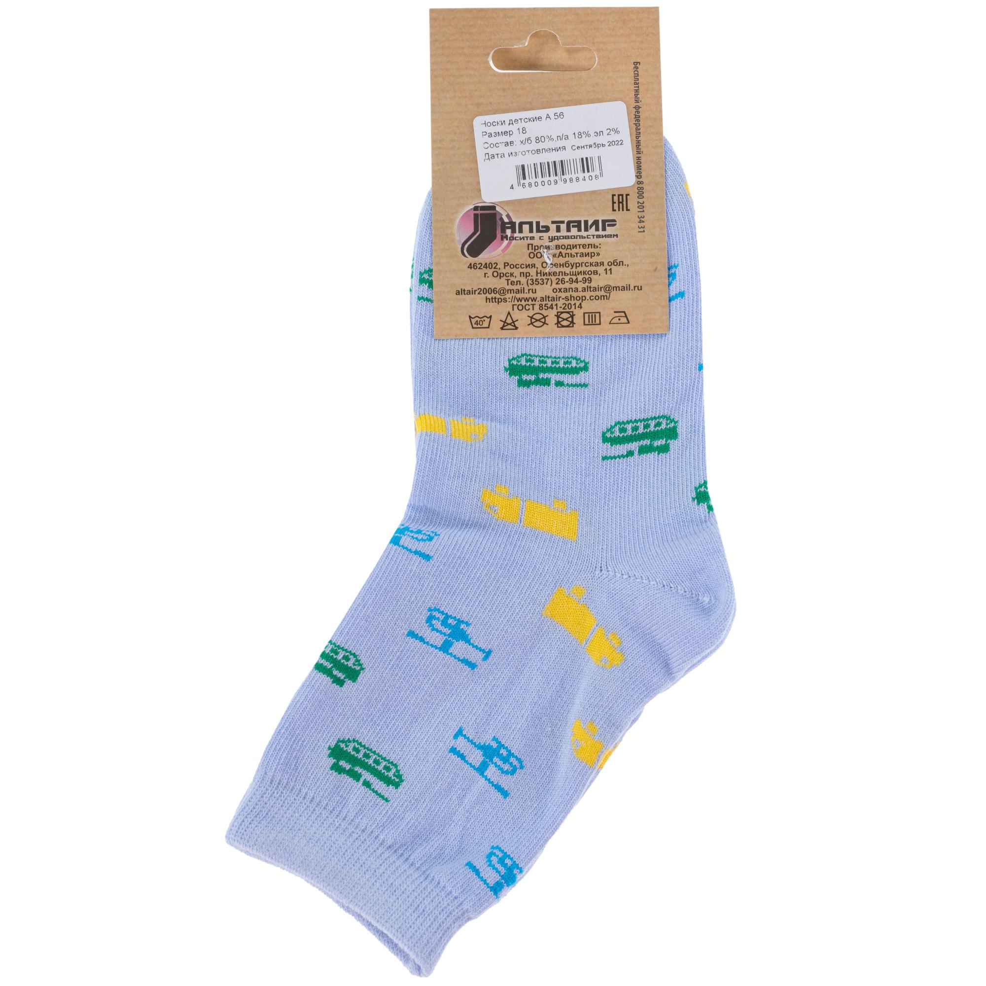 Комплект детских носков из 2 пар, круглогодичные, укороченные, цвет светло-голубой, прикольные, состав: 80% хлопок, 18% полиамид, 2% эластан, фабричный артикул 2-А56. Производитель «ООО Альтаир, г. Орск, Оренбургская обл, Россия» под брендом «Альтаир».