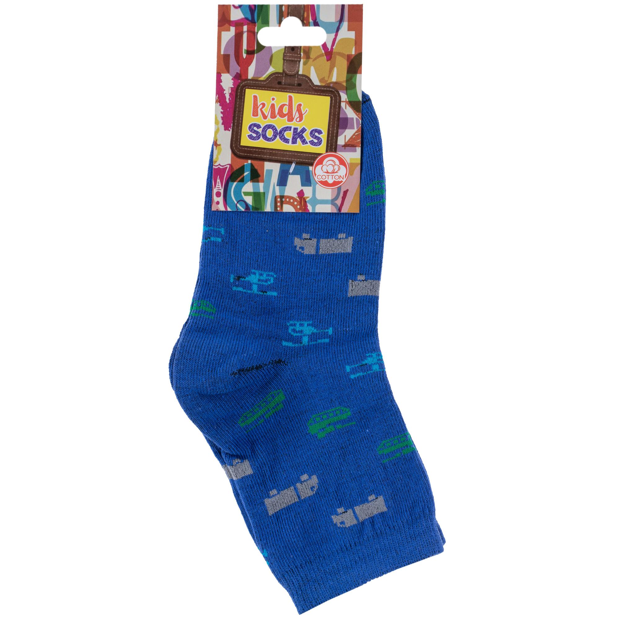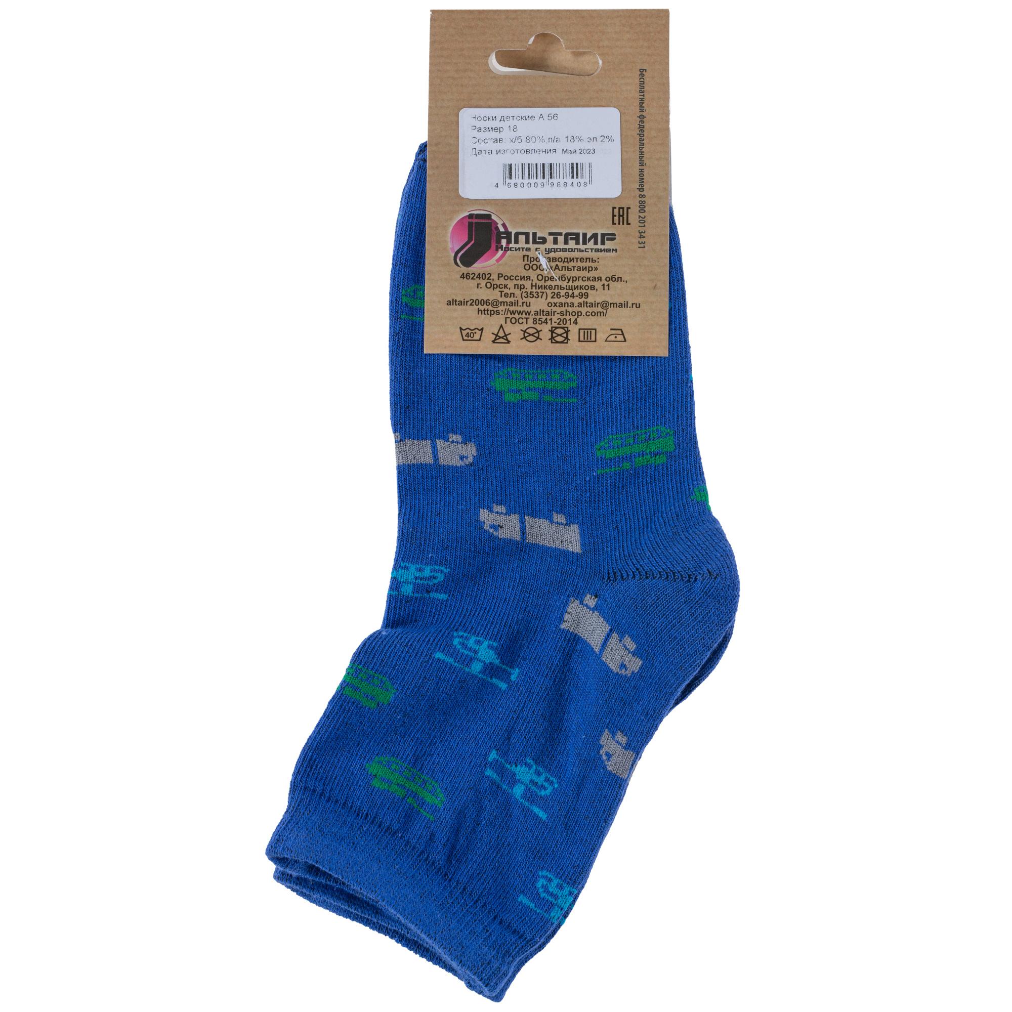 Комплект детских носков из 2 пар, круглогодичные, укороченные, цвет васильковый, повседневные, шов обычный (не бесшовные), принт (рисунок): транспорт, с узором, состав: 80% хлопок, 18% полиамид, 2% эластан, арт. 2-А56. Производитель «ООО Альтаир, г. Орск, Оренбургская обл, Россия» под брендом «Альтаир».