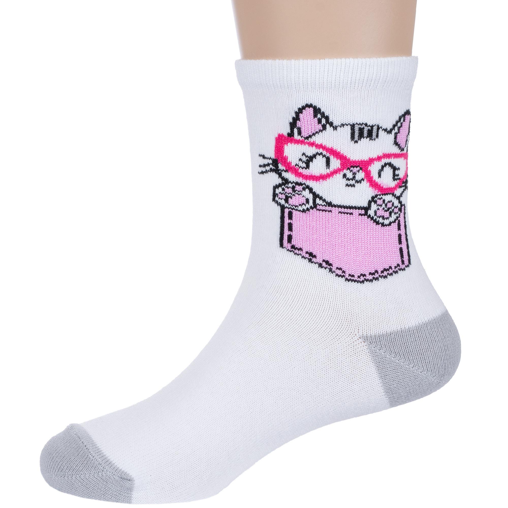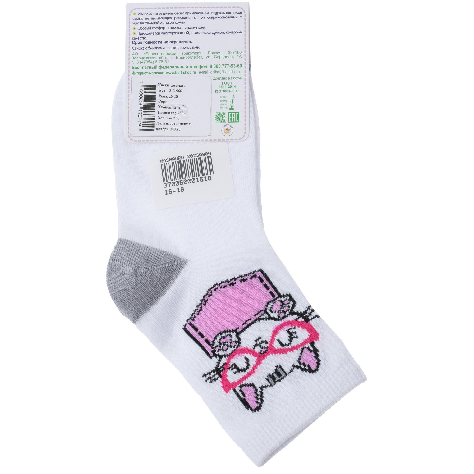 Комплект детских носков из 2 пар, круглогодичные, укороченные, цвет белый, прикольные, состав: 72% хлопок, 25% полиэстер, 3% эластан, фабричный артикул 2-8С966. Производитель «АО Борисоглебский трикотаж, Воронежская обл, Россия» под брендом «Борисоглебский трикотаж».