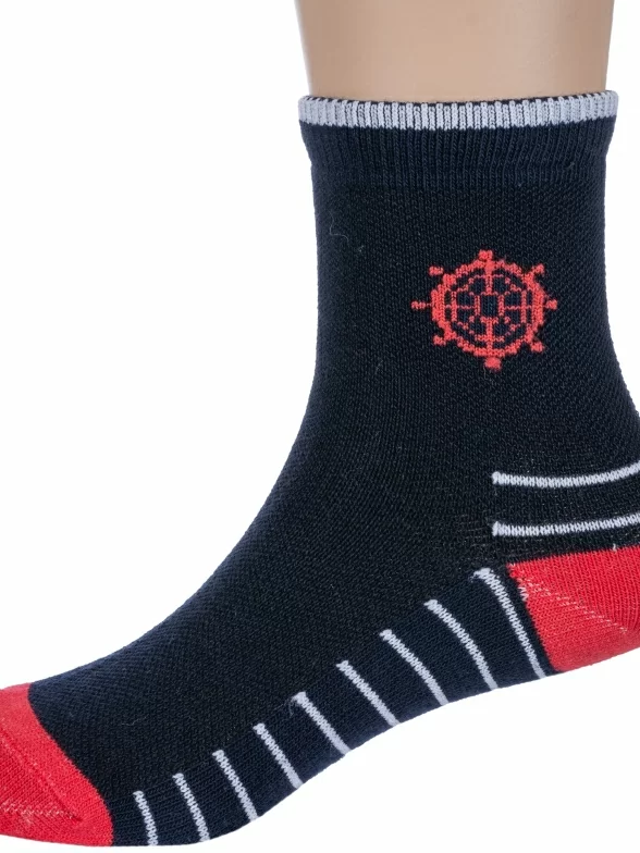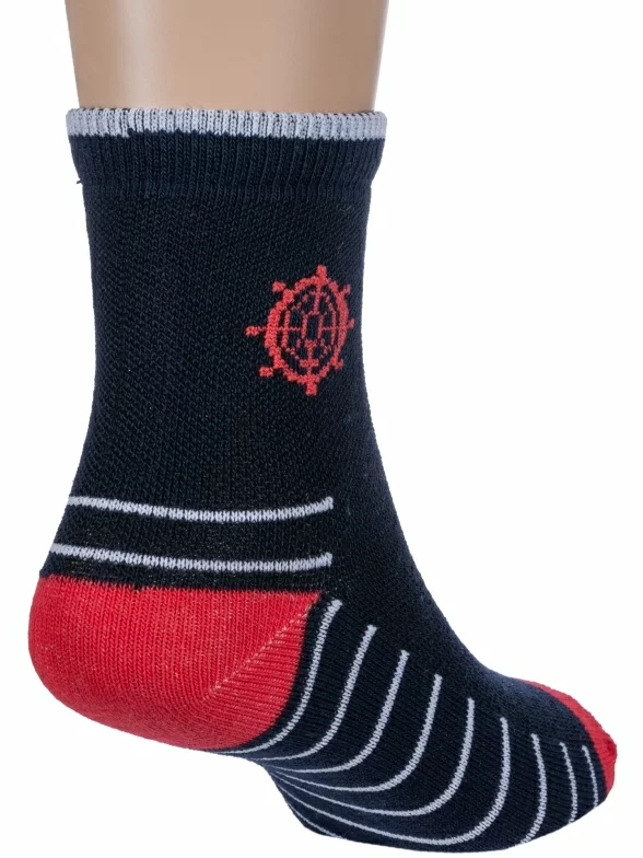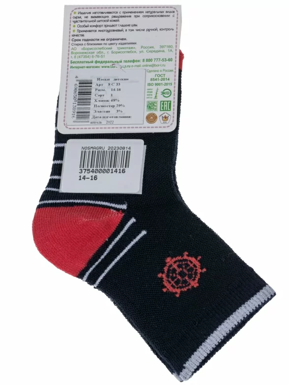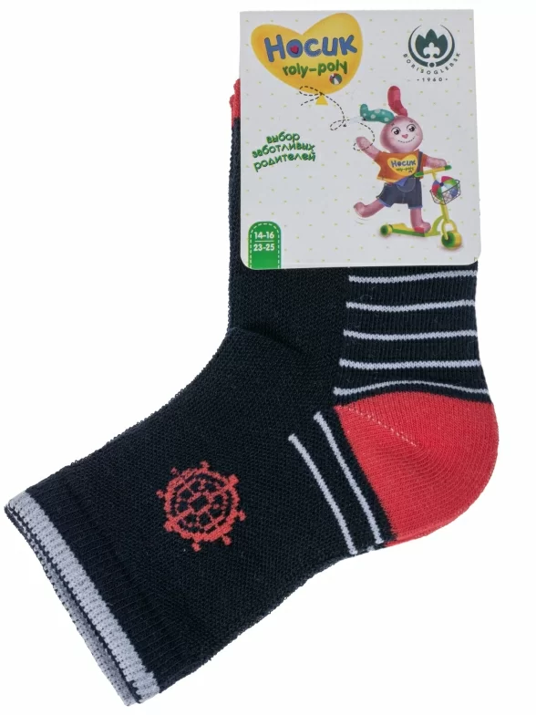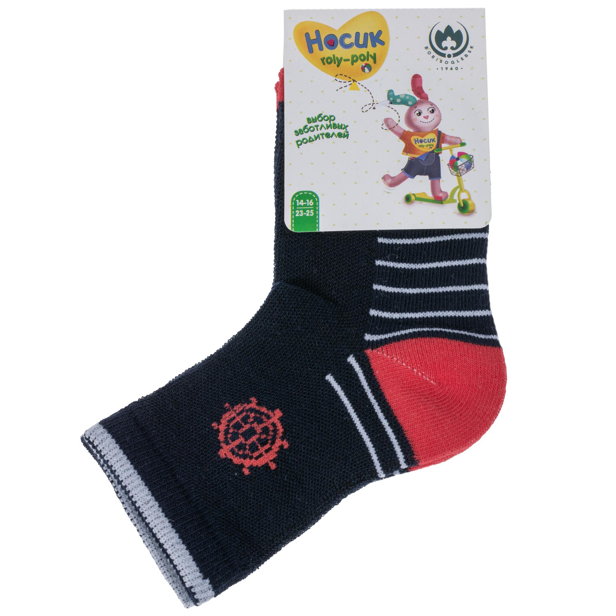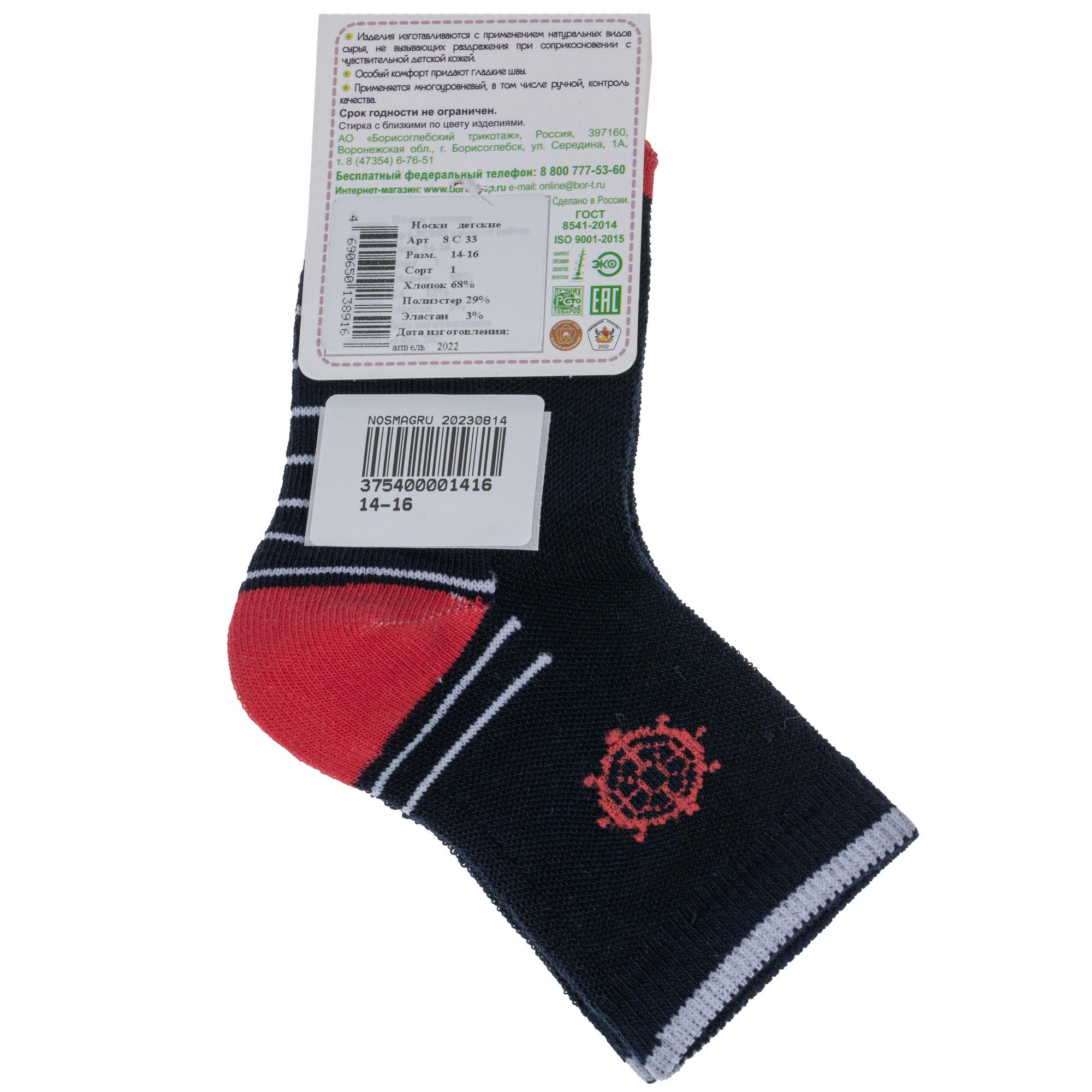 Комплект детских носков из 2 пар, круглогодичные, укороченные, цвет темно-синие, прикольные, состав: 68% хлопок, 29% полиэстер, 3% эластан, фабричный артикул 2-8С33. Производитель «АО Борисоглебский трикотаж, Воронежская обл, Россия» под брендом «Борисоглебский трикотаж».
