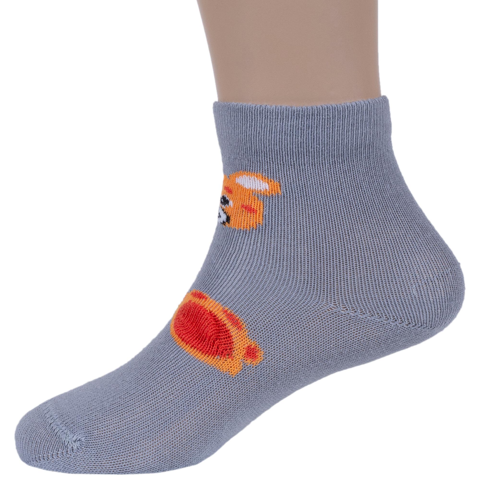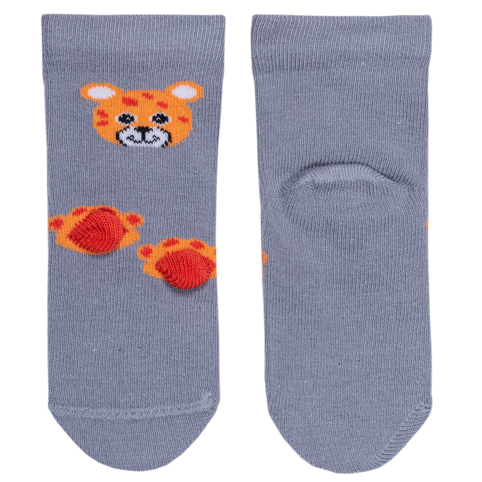 Комплект детских носков: бледно-голубая пара с принтом в виде лисички и светло-серая - с тигренком.