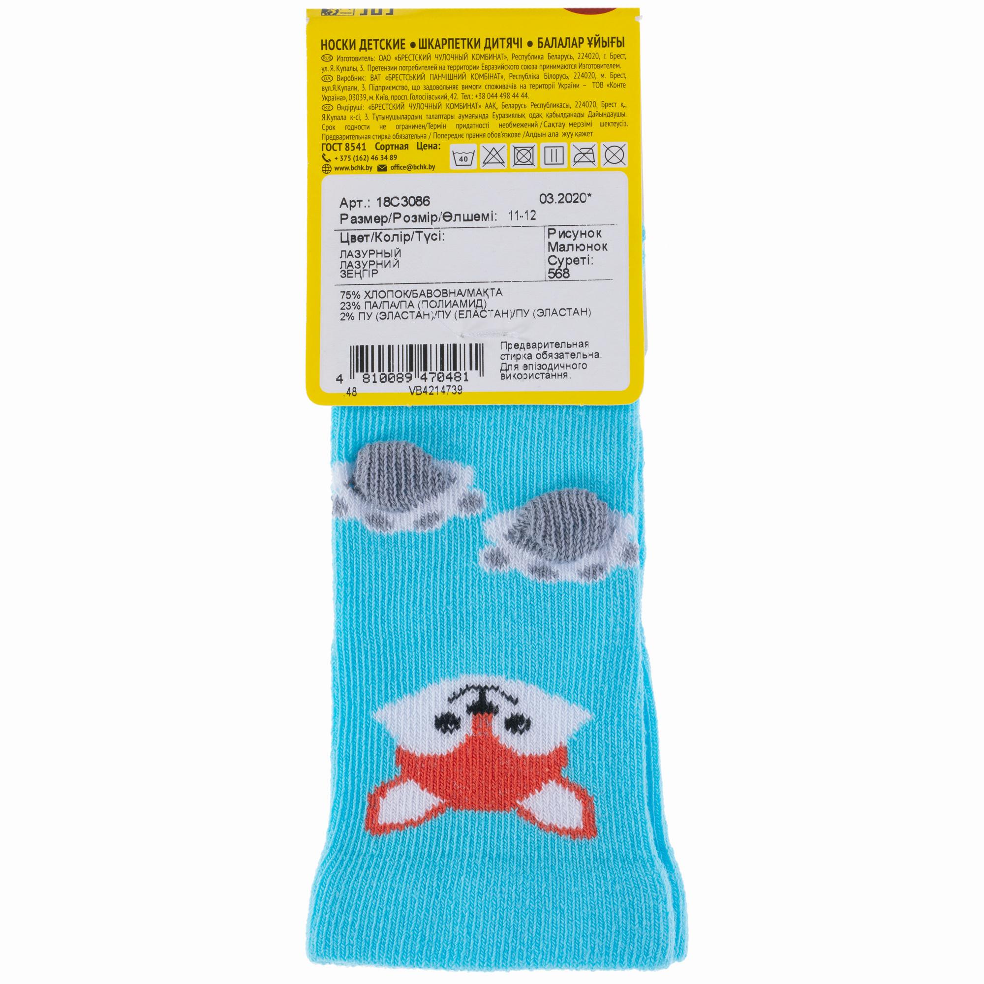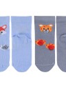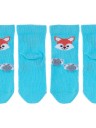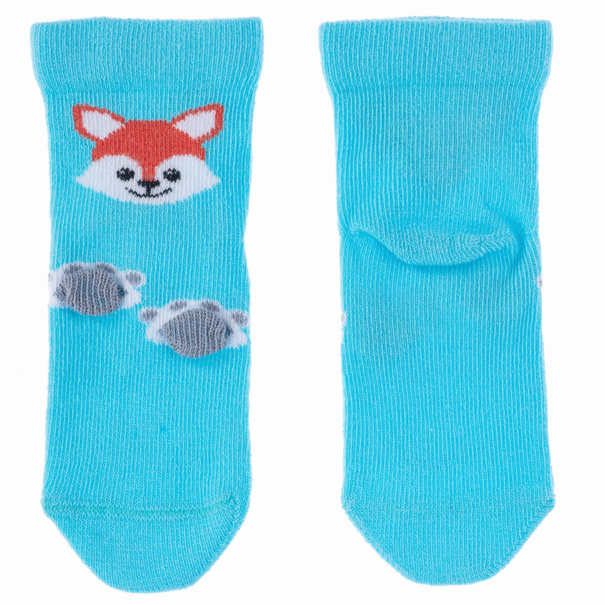 Комплект детских носков: пара лазурного цвета с принтом в виде лисички и желтая пара с тигренком.