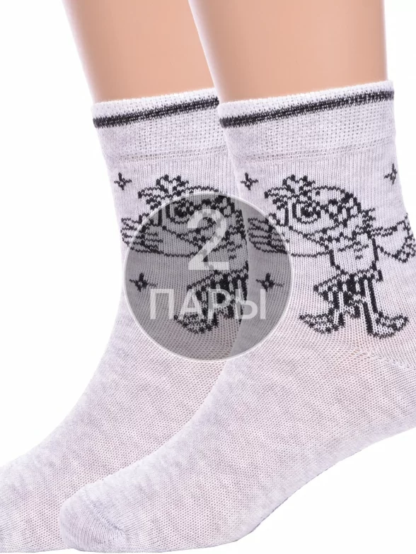 Комплект детских носков из 2 пар, круглогодичные, укороченные, цвет рис. 1048, светло-серый меланж, повседневные, возможно бесшовные, принт (рисунок): фильмы / сериалы / мультики, животные, с узором, состав: 70% хлопок, 28% полиамид, 2% эластан, арт. 2-23С3053. Производитель «Брестский чулочный комбинат ОАО, Беларусь» под брендом «Брестские (бчк)».