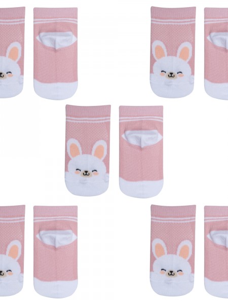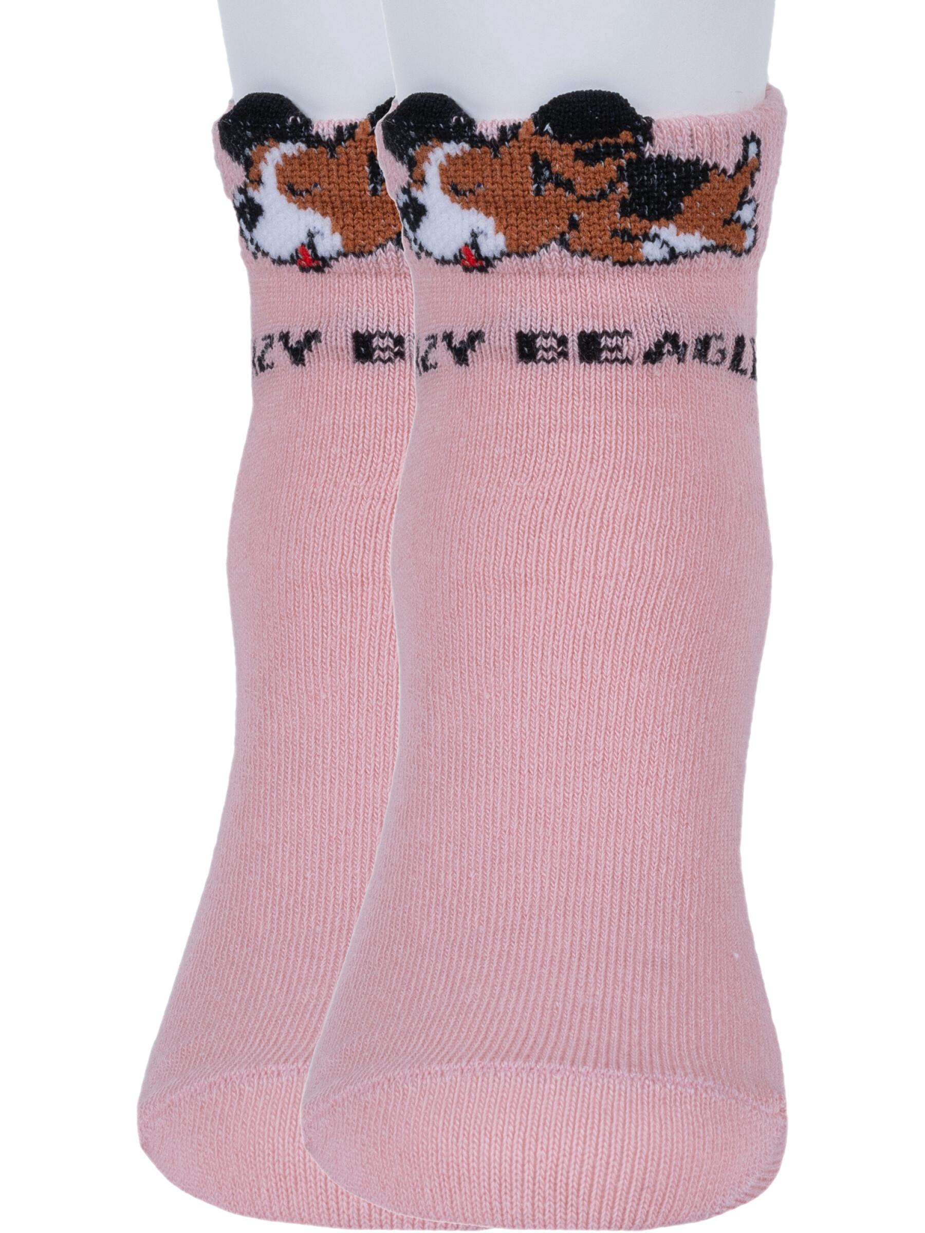 Комплект детских носков из 2 пар, круглогодичные, короткие, цвет пыльная роза, повседневные, шов обычный (не бесшовные), принт (рисунок): животные, ягодно-фруктовый, с узором, состав: 74% хлопок, 24% полиамид, 2% эластан, арт. 2-С1707. Производитель «ГАММА» Россия под брендом «Гамма».